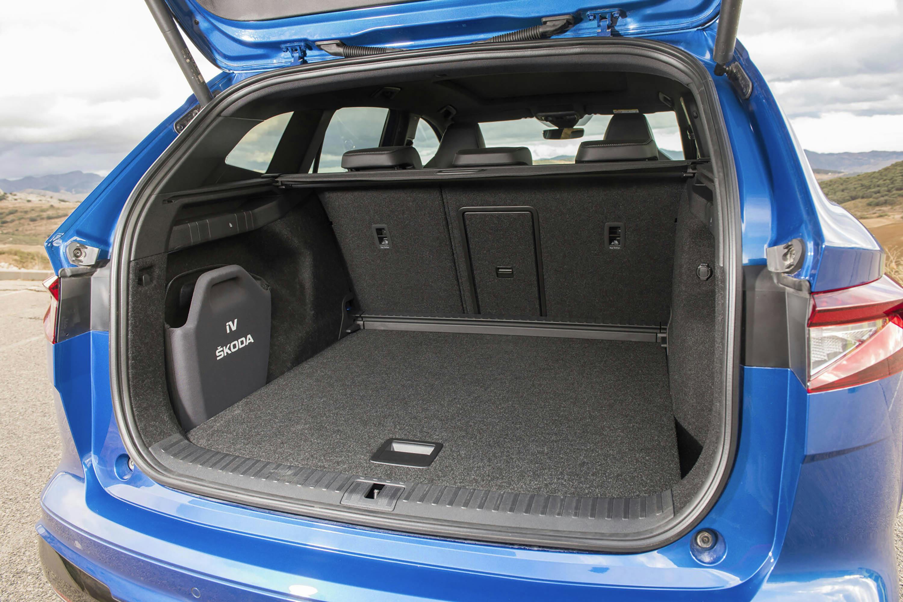 Op de achterbank is de Enyaq een echte Skoda. Ruim, zowel qua been- als hoofdruimte, maar ook comfortabel dankzij een goed gevormde achterbank. Twee usb-c-oplaadpunten doen de rest, evenals een neerklapbare middenarmsteun met bekerhouders en ventilatieroosters. De kofferruimte is met 585 liter ronduit fors. Hij is lekker diep, lang en beschikt over een kunststofconstructie waarin je een krat of ander voorwerp kunt zekeren. Handig is ook de uitsparing en een rubberachtige case voor de laadkabel. Stuk voor stuk Skoda's credo: simply clever.