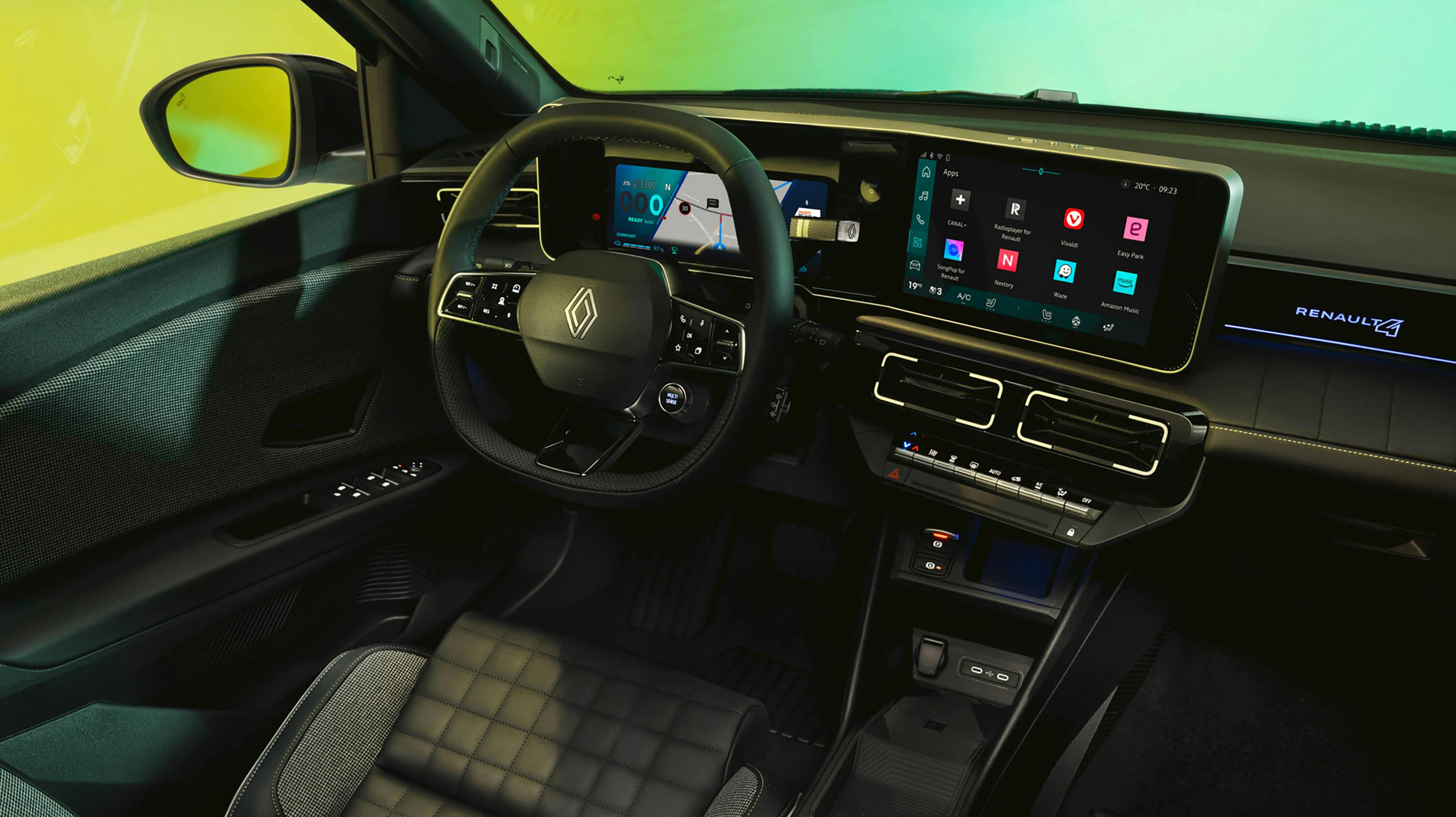 De nieuwe Renault 4 wordt geleverd met twee batterijopties: 40 kWh of 52 kWh, gekoppeld aan motoren van respectievelijk 120 pk en 150 pk. Dat resulteert in een actieradius van 300 of 400 kilometer. Standaard is de auto uitgerust met een 11kW-boordlader. Snelladen is mogelijk met maximaal 80 kW voor de 40kWh-accu of 100 kW voor de grotere batterij. Een warmtepomp behoort tot de standaarduitrusting, terwijl EV-routeplanning via Google Maps zorgt voor een zorgeloze reis.