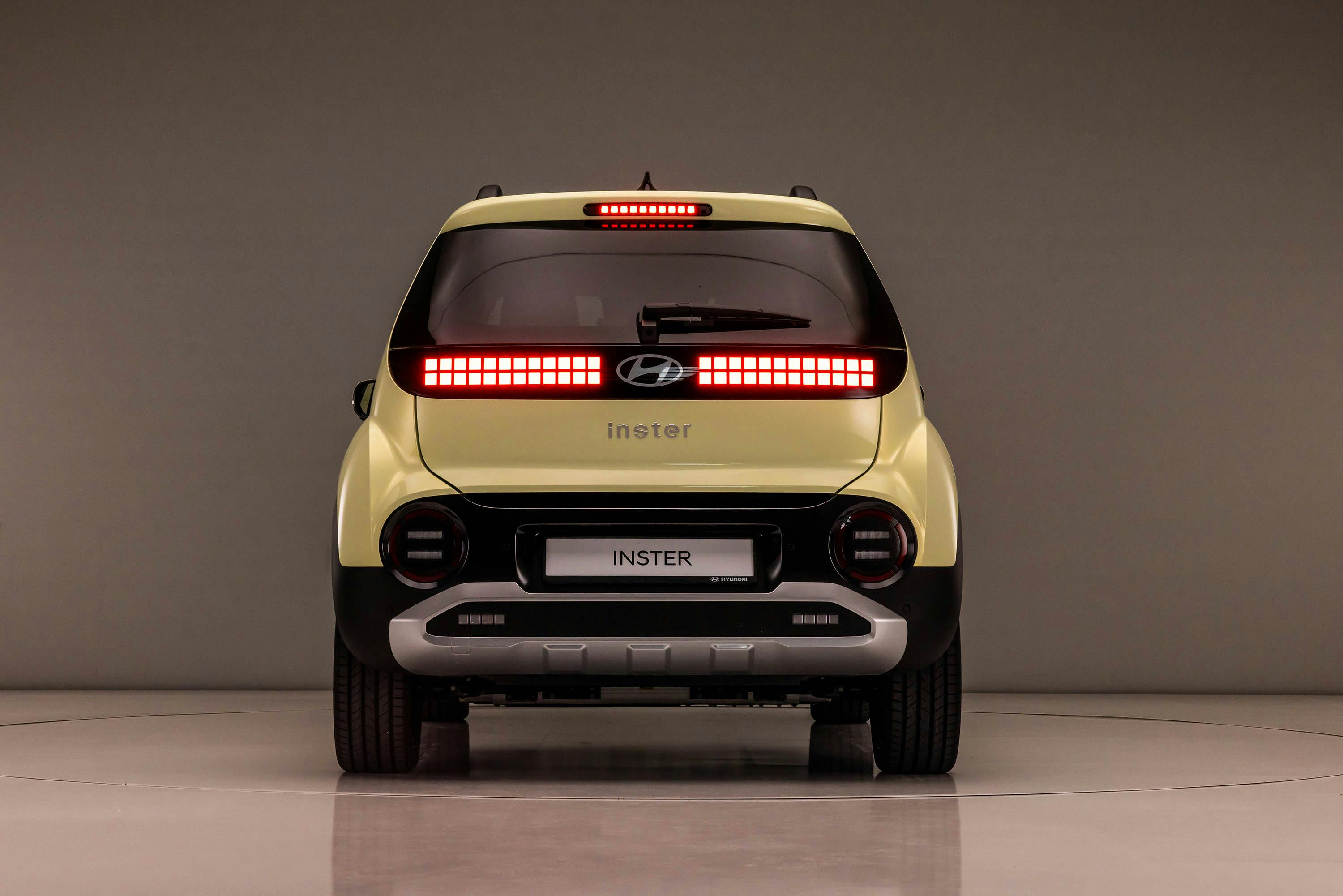 Hyundais langverwachte junior is met een lengte van 3,82 meter en een breedte én hoogte van 1,61 meter een auto die qua lengte korter is dan de Citroën ë-C3. Dankzij een 4 centimeter langere wielbasis is de Inster echter veelbelovend wat betreft het interieur. In vergelijking met de Dacia is hij wel 10 cm langer, zo'n 3 cm breder en net geen 10 centimeter hoger. De Inster lijkt hiermee in het A+-segment te opereren en zit qua formaat tussen een Hyundai i10 en i20 in.