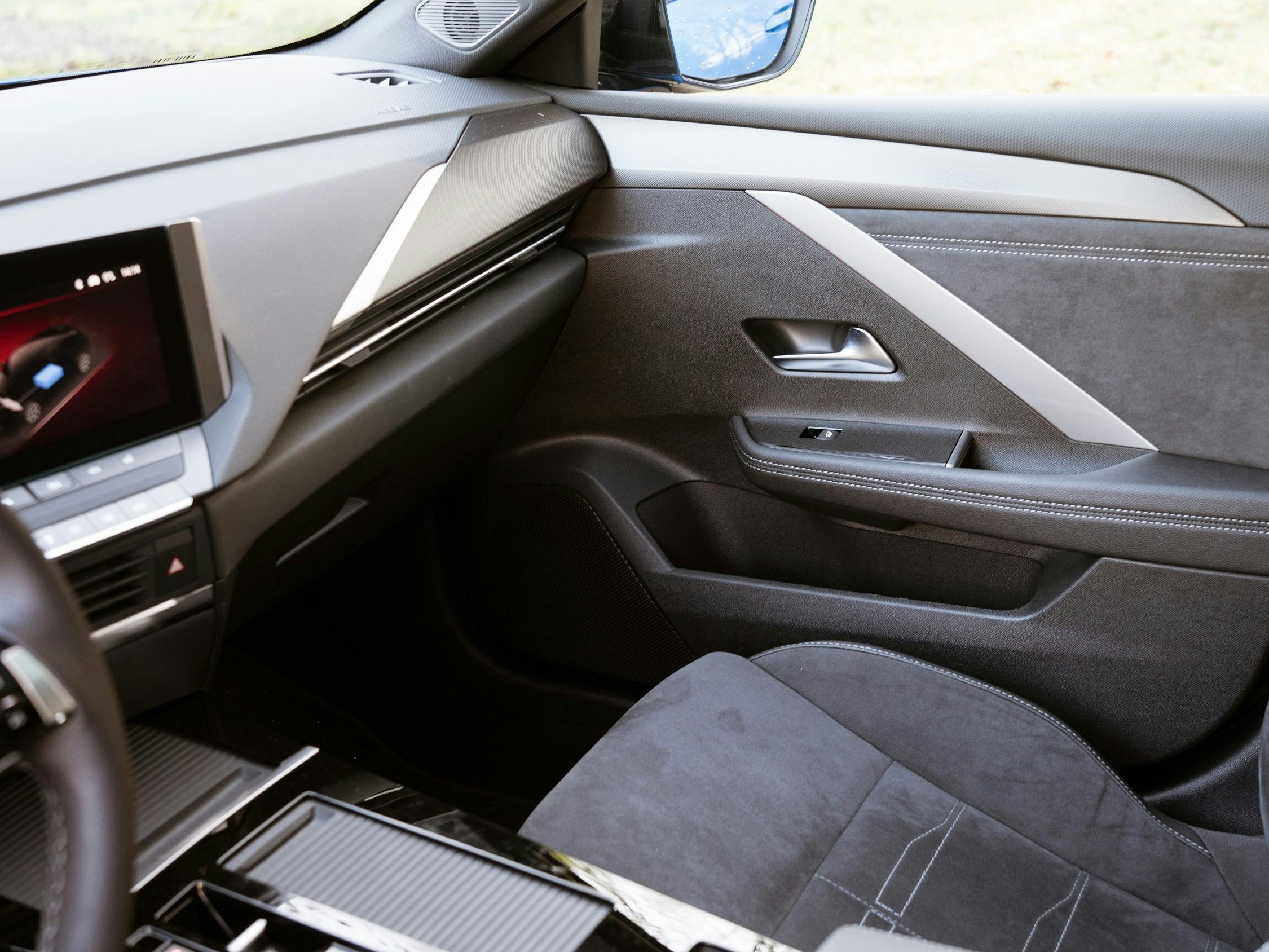 Eerlijk is eerlijk: wanneer je in de elektrische Astra achter het stuur stapt, ontdek je verrassend weinig tastbare verschillen met de benzine- en hybrideversies. De stoelen staan op precies dezelfde hoogte, de batterijen slokken niet te veel ruimte op voor de voeten van de inzittenden. De hoge middentunnel kennen we uit de andere versies, en de tuimelschakelaars voor het kiezen van de rijrichting en rijprogramma's worden ook toegepast in de benzinemodellen met automaat. De afwerking is in orde, de toegepaste materialen zijn een mengeling van mooie stoffen met chique stiksels en hard, glimmend plastic.