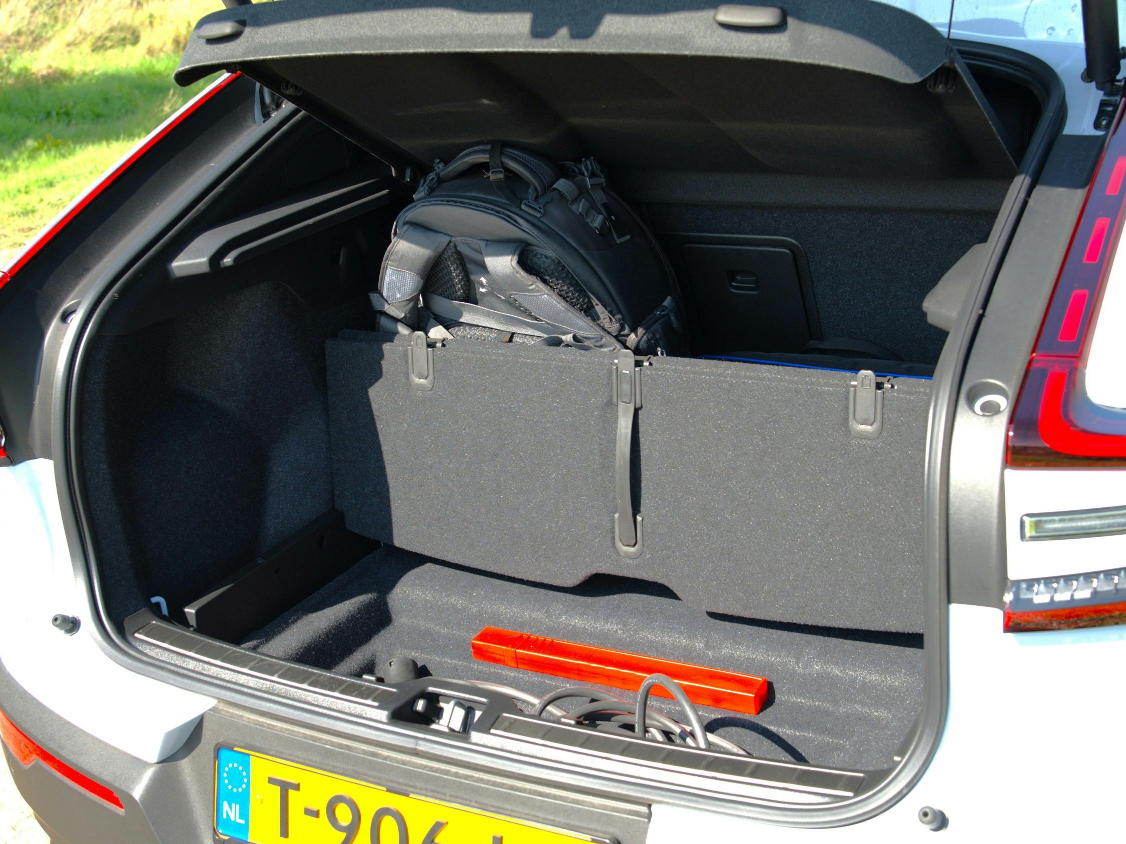 Met een inhoud van 404 liter is de kofferbak van de EC40 praktisch net zo groot als die van de EX40 (410 liter). Dat wil zeggen: met de achterbank in stelling. Wanneer je de twee delen van de rugleuning neerklapt, merk je dat grote objecten minder gemakkelijk onder de achterklep passen. Doordat de achterruit van de EC40 veel platter ligt, lever je 110 liter op het maximum laadvolume in. In totaal kan er 1196 liter bagage worden vervoerd. De 'frunk' voorin heeft een inhoud van 31 liter. Daar past de laadkabel dus gemakkelijk in.
