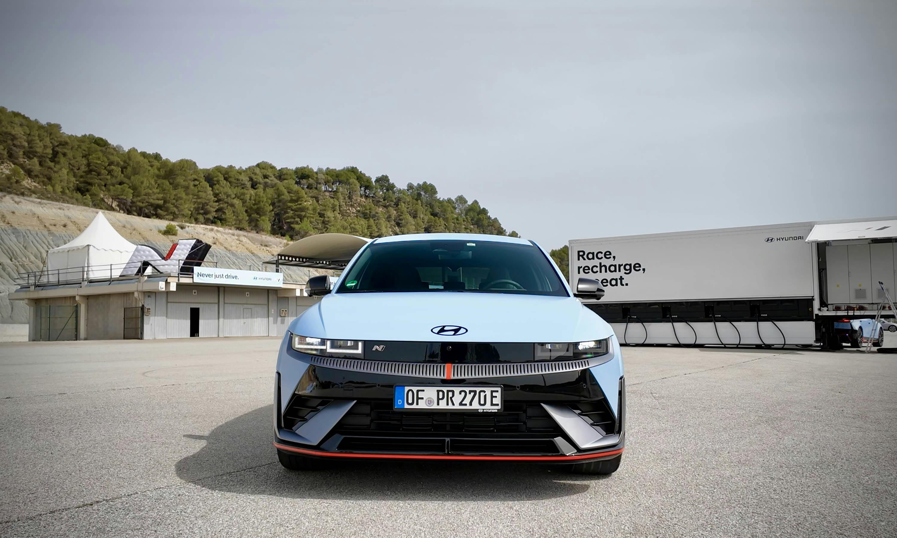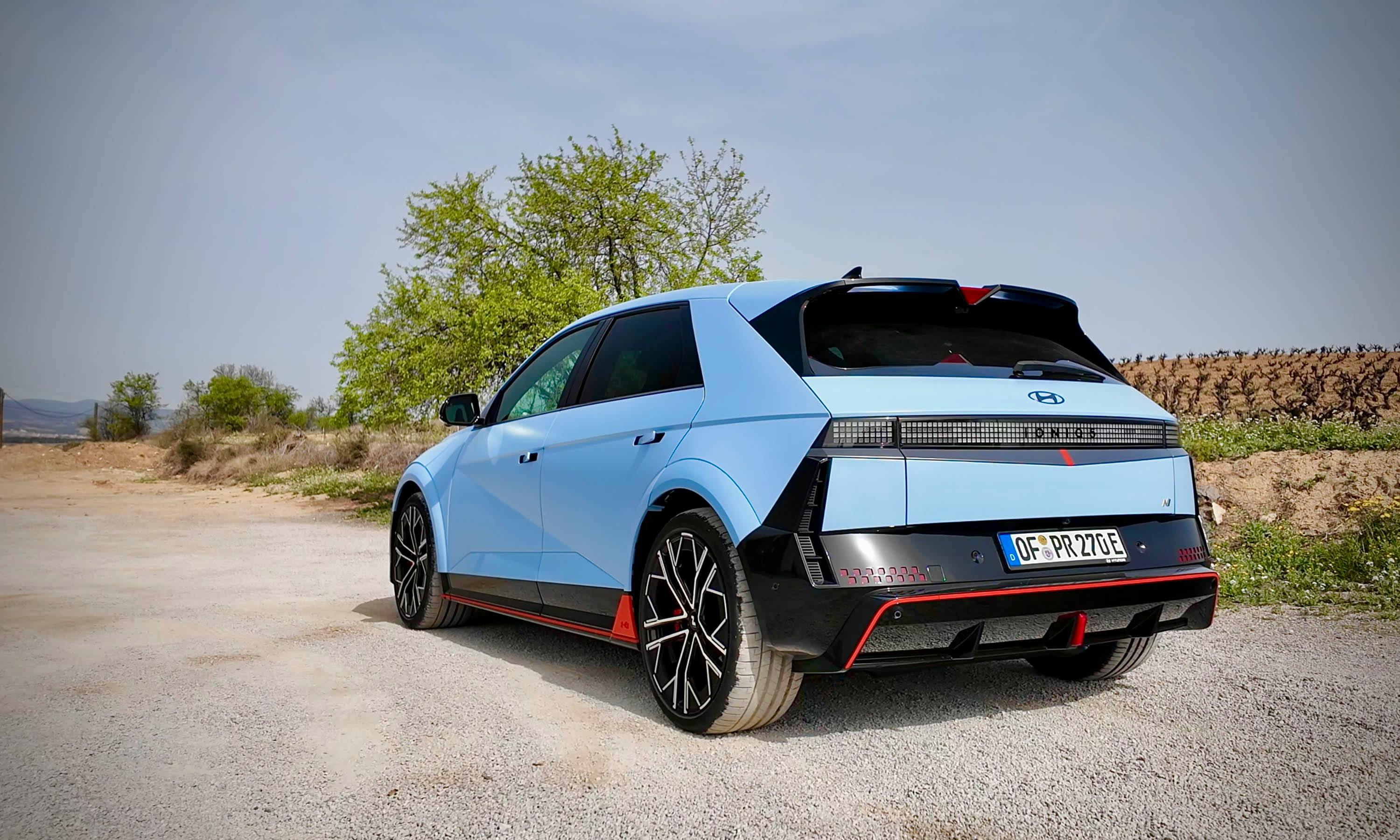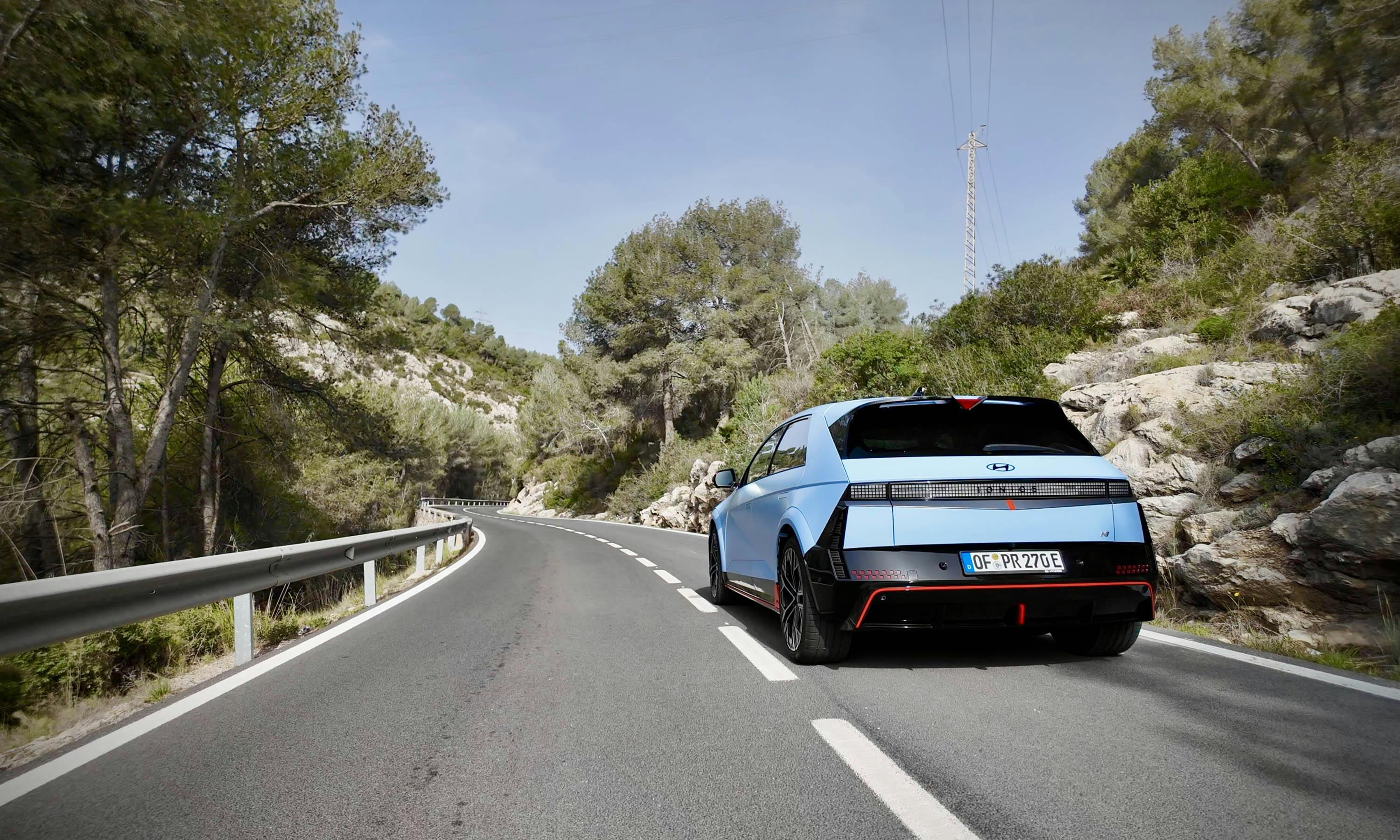 Of dat erg is? Niet bepaald, want een van de voorgeprogrammeerde speelmodi laat al snel zien waar de N toe in staat is: de Drift Optimizer. Na het inschakelen van deze modus en het volledig uitschakelen van het tractie- en stabiliteitssysteem (ja, dat is mogelijk) bepaalt de elektronica dat alleen de achterste elektromotor voor de volle 100 procent wordt aangesproken. Het exemplaar op de vooras assisteert voor 10 procent, zodat er altijd een bepaalde controlerende functie van de voorwielen overblijft. Het resultaat? Keer op keer een prachtig controleerbare drift, zelfs op het meest grippy en droge asfalt.