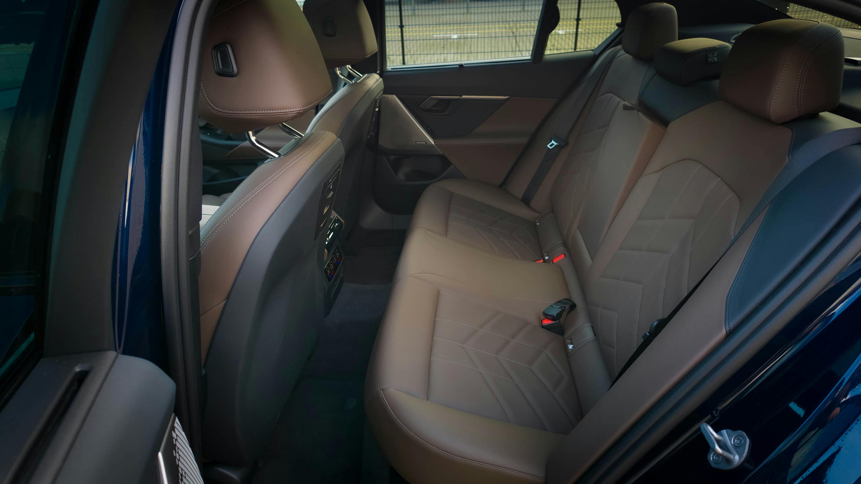 Hoewel de i5 voorin bijzonder riant is, wordt de overdaad aan externe centimeters op de tweede zitrij helaas niet benut. Hier hadden we meer van verwacht. Passagiers die plaatsnemen achter iemand die langer is dan 1,80 meter, kunnen het zeker met de voetjes benauwd krijgen. Ook de cardantunnel (waarom heeft een EV deze überhaupt?) neemt onnodig veel ruimte in beslag.