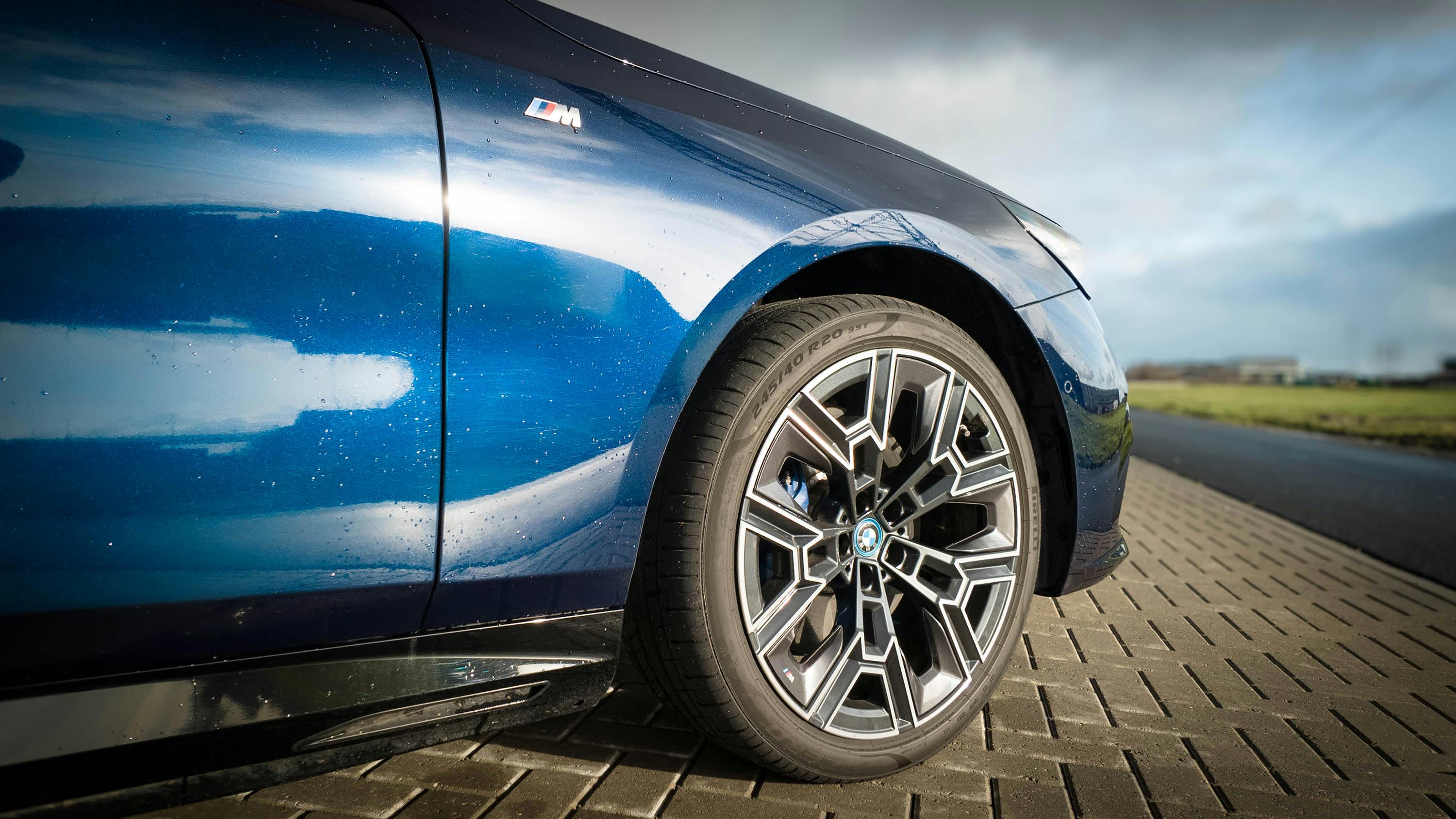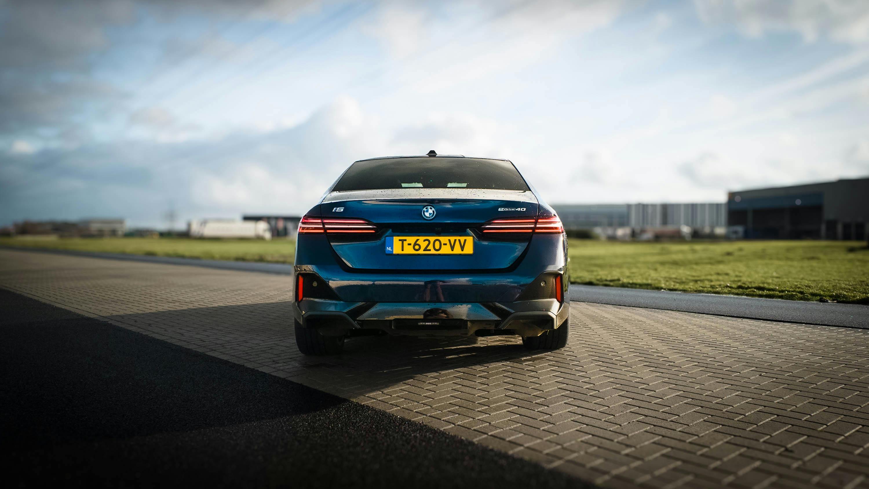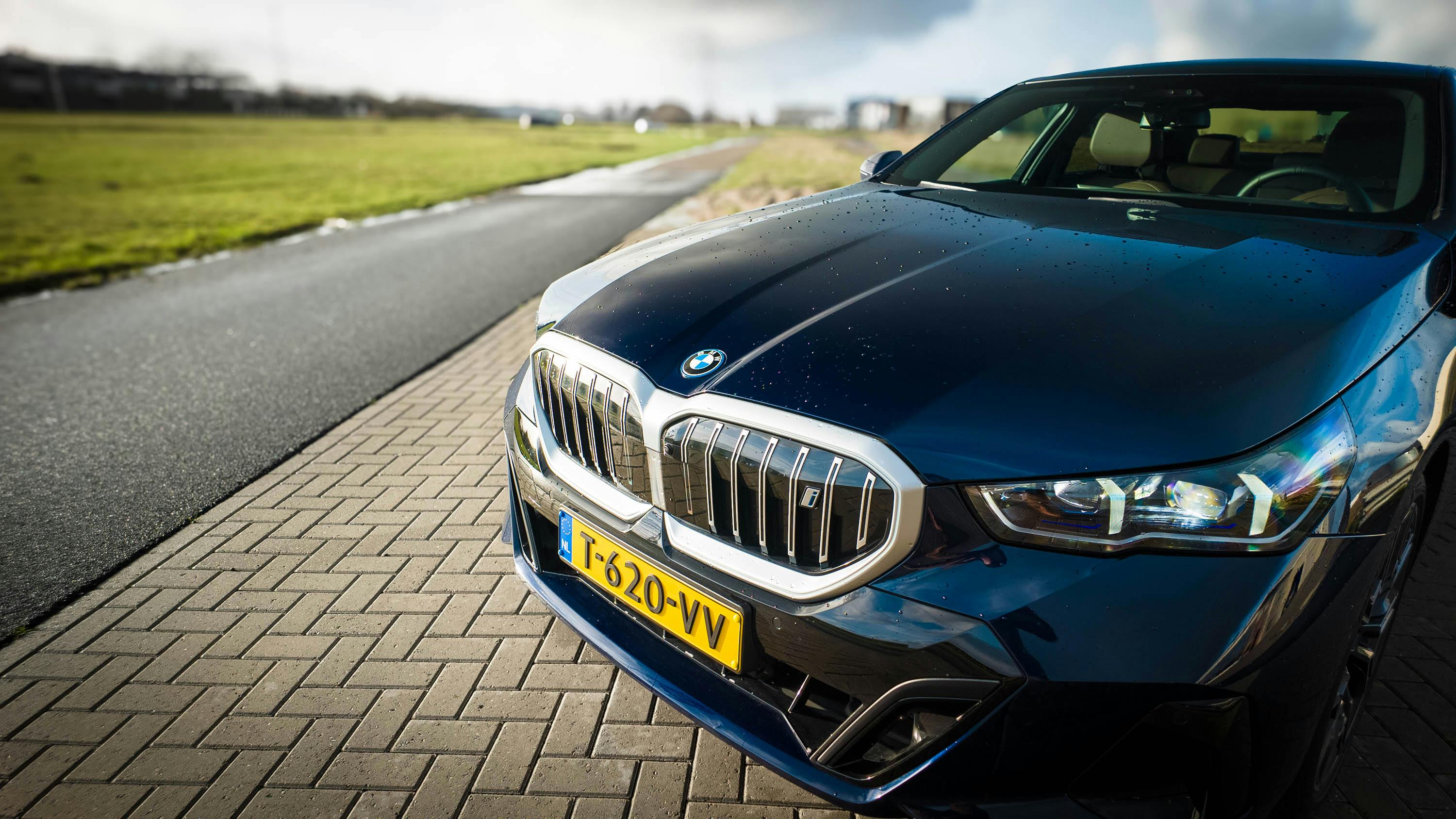 Goed om te weten: de nieuwe i5 wordt standaard geleverd op 19-inch lichtmetalen wielen, maar de testauto is uitgerust met 20-inch wielen. Het M-pakket voegt daarnaast hoogglans zwarte raamomlijsting toe, evenals verchroomde elementen in de grille en een sportiever ogende voor- en achterbumper.