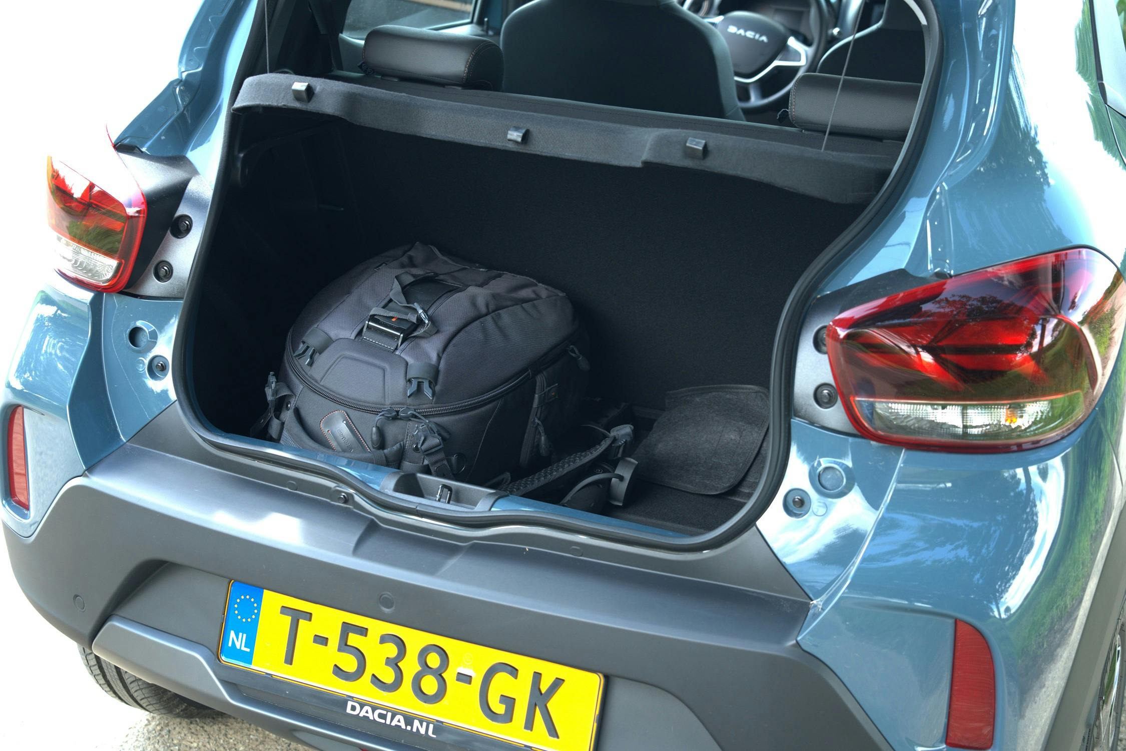 Aan boord heb je voor kleine spulletjes tal van opbergmogelijkheden. De middenconsole heeft een diepe uitsparing, in de deurpanelen zitten ruime bakken en rechts is een volwaardig dashboardkastje geplaatst. De rugleuning van de achterbank kan alleen in z’n geheel worden neergeklapt. Wanneer je extra bagageruimte nodig hebt, lukt het dus niet meer om nog een derde passagier mee te nemen. Het maximum laadvermogen bedraagt 265 kilo, oftewel twee volwassenen en een redelijk complete kampeeruitrusting. De Spring Electric kan niet met een trekhaak worden geleverd.