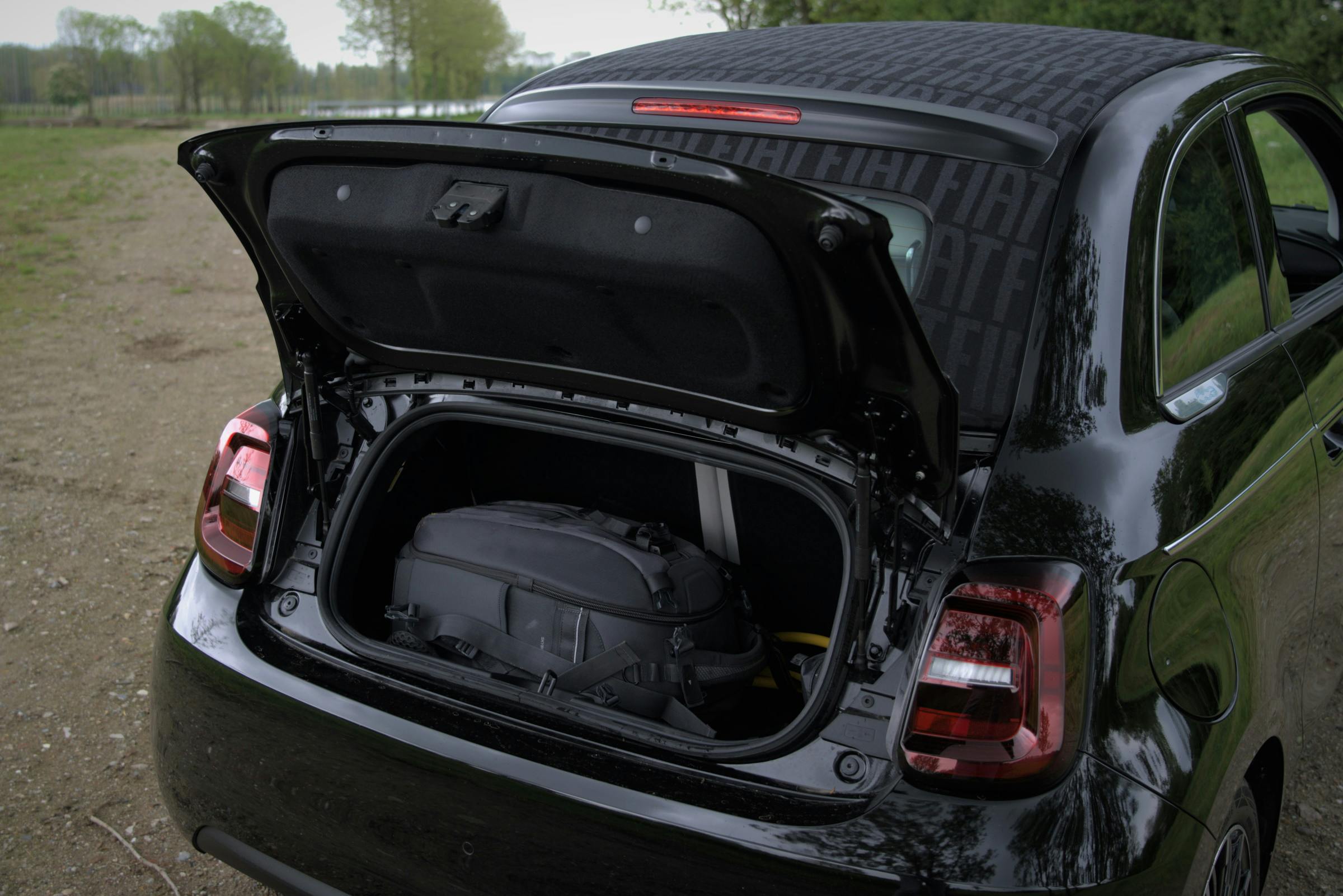 De Fiat 500e is zo praktisch als je mag verwachten van een slechts 3,63 meter lange auto waarbij de nadruk op design ligt. Een volwaardige gezinsauto zal het nooit worden. Wat niet betekent dat hij ongeschikt is voor de dagelijkse haal- en brengservice voor de kinderen, zolang die nog op de lagere school zitten. Als ze gaan puberen en de lengte in schieten, kan de achterbank van de 500 maar beter tot ‘no-go area’ worden verklaard. De bagageruimte heeft een inhoud van 185 liter. Klap je de twee delen van de bankleuning neer, dan is de 500e in een handomdraai omgetoverd tot tweezitter, en kun je het riante volume van 550 liter bijvoorbeeld gebruiken voor je vakantie-uitrusting. Bij de 500e Cabrio scharniert het kleine achterklepje net onder de achterruit, daardoor is de laadruimte moeilijk bereikbaar. De 500e Berlina (zonder vouwdak) heeft een grote ‘derde deur’ die vanuit de dakrand openzwaait. Voor een aanhangwagen of fietsendrager is de 500e ongeschikt.