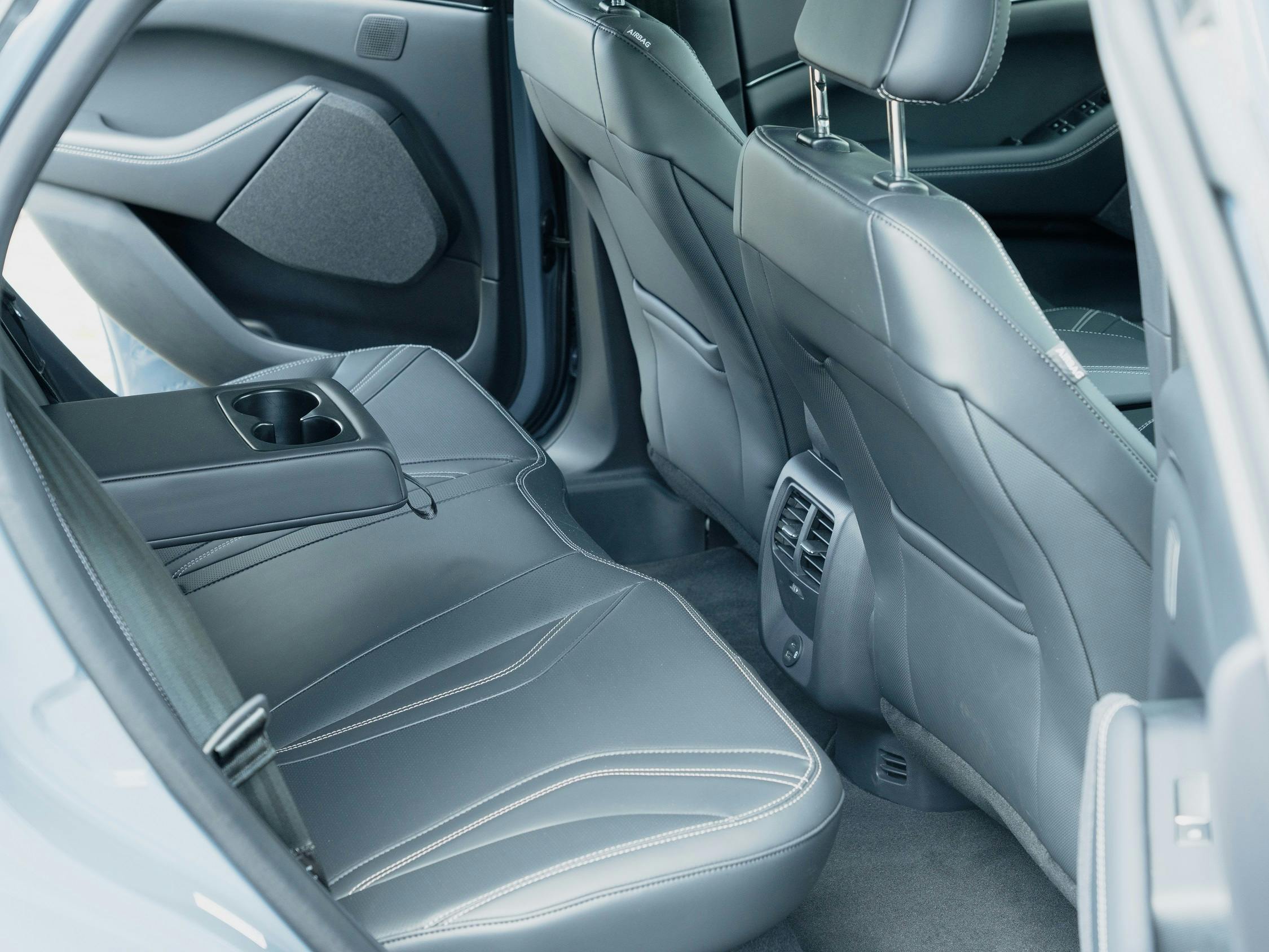 De Mach-E laat zich moeilijk vergelijken met de veel lichtere Fiesta of Focus, maar op het gebied van rijdynamiek is deze elektrische SUV wel degelijk een echte Ford. Alleen de gebrekkige zijdelingse ondersteuning van de grote brede stoelen, wat mede veroorzaakt wordt door de gladde bekleding, gooit bij het snellere bochtenwerk roet in het eten.