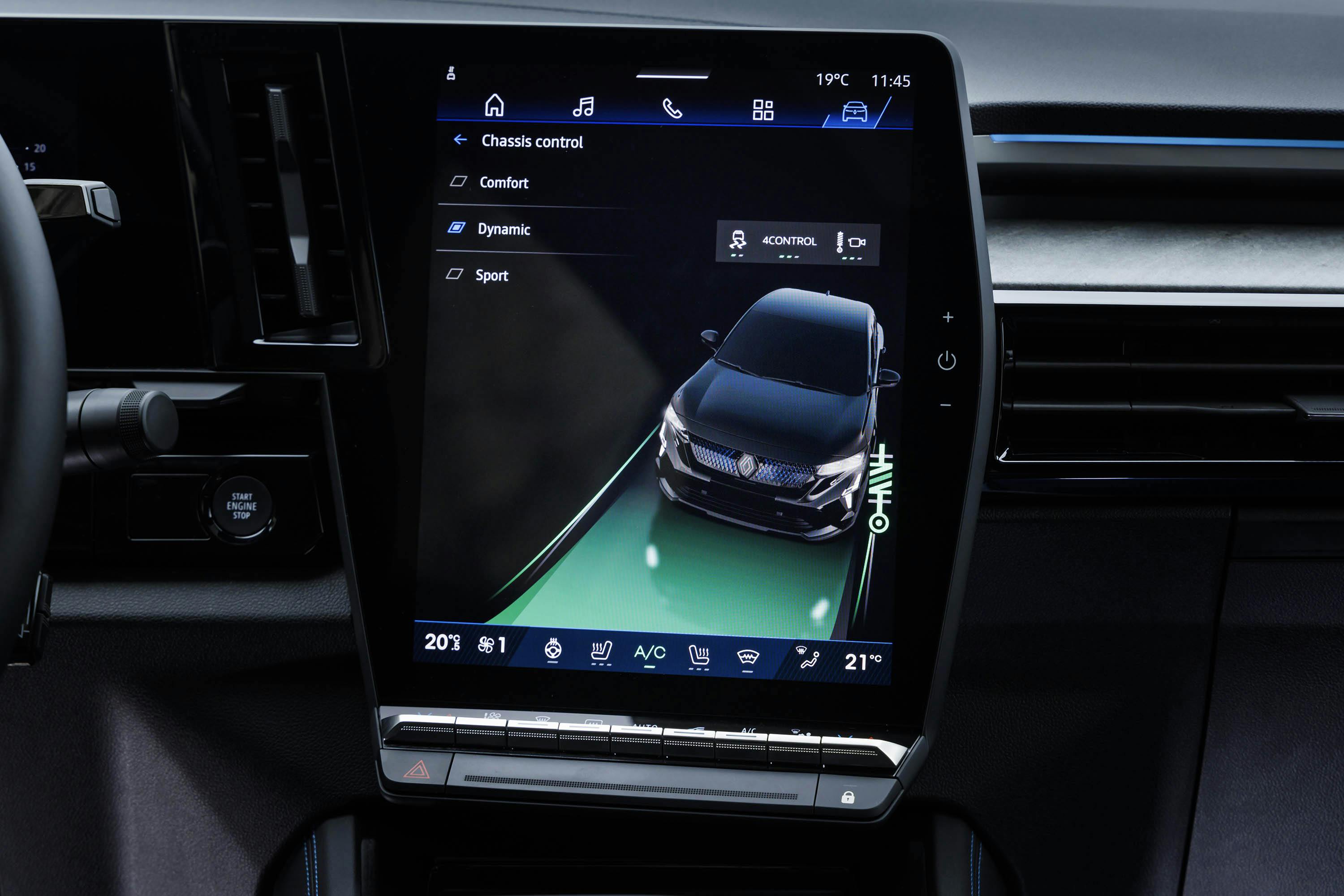Het adaptief onderstel kan zich met behulp van een camera-scanner achter de binnenspiegel continu aan het wegdek aanpassen. Iets wat goed werkt, want in eigenlijk elke situatie voelt de Rafale verfijnd, comfortabel, maar ook zeker na het selecteren van de modus Sport communicatief en dynamisch.