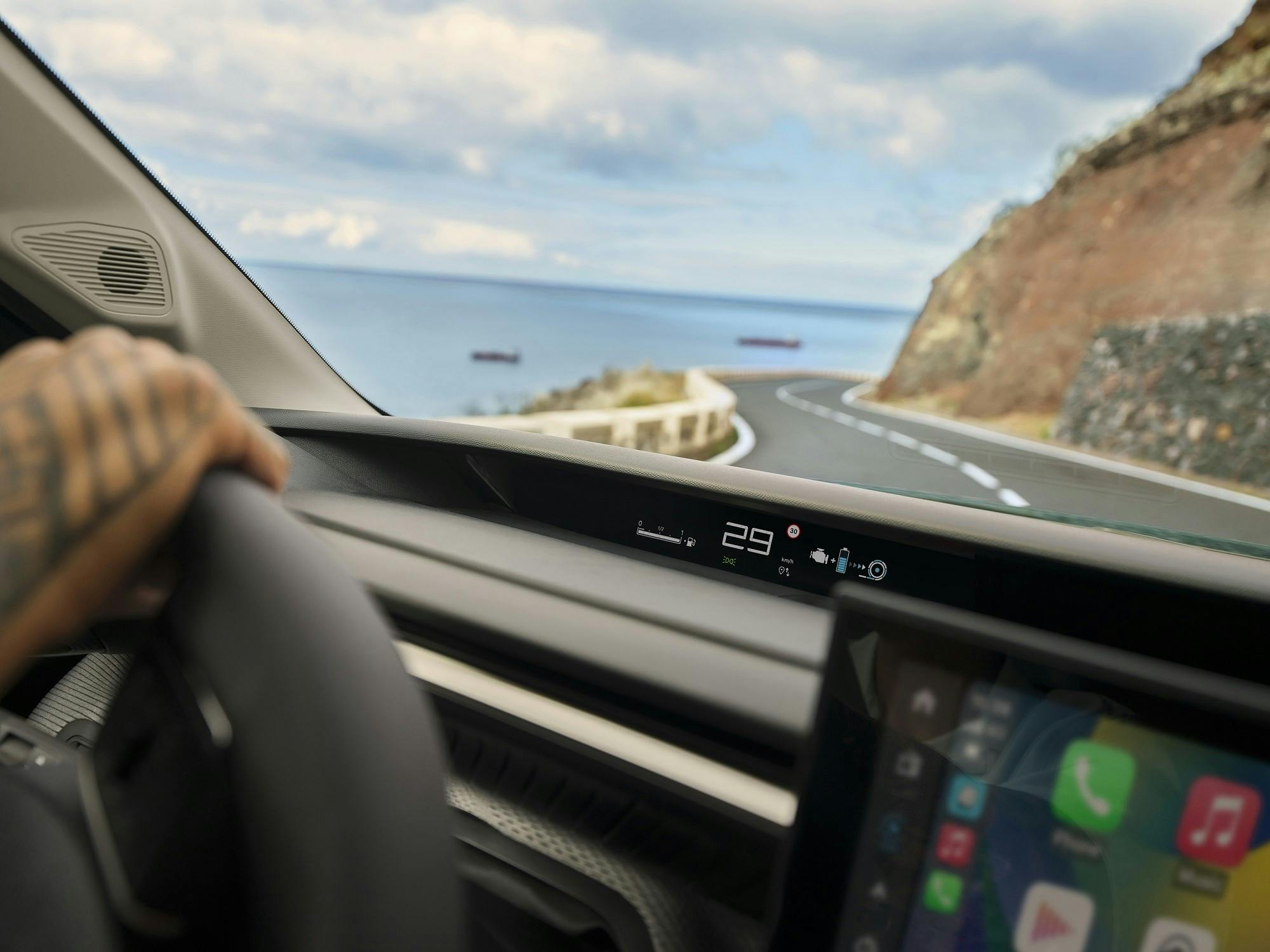 Uiterlijk volgt de ë-C3 Aircross uiteraard de designkoers die Citroën met de nieuwe C3 hatchback is ingeslagen. Ook het interieurontwerp volgt hetzelfde thema. Sterker nog: het dashboard van de Aircross is identiek aan dat van de C3 hatchback. In de basisversie You is het 10,25-inch touchscreen optioneel verkrijgbaar, de duurdere en completere Max-uitvoering heeft dit multimediascherm standaard. De digitale displays voor alle rij-info is vlak onder de voorruit geplaatst, en zie je net boven de stuurrand.