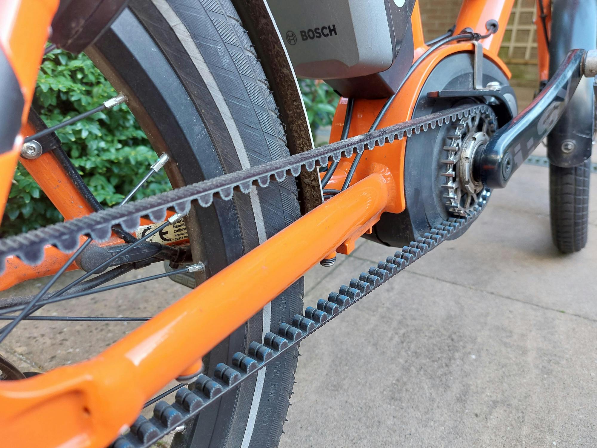 · Een fietsketting slijt sneller dan een riem en moet vaker nagespannen worden.