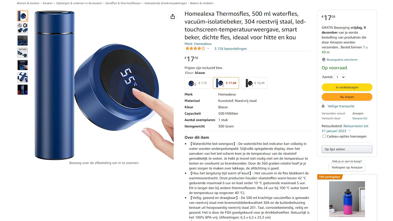 Stap jij weleens in de auto met een lekkere kop koffie of thee die vervolgens al koud is voordat je überhaupt de snelweg op bent omdat je auto zo koud is? Dan is deze thermosfles misschien wel iets voor jou. Hij houdt niet alleen je drankje lang warm, maar geeft ook aan hoe warm jouw kopje koffie of thee is. Zo sta je minder snel voor hete verrassingen en wordt je een verbrande tong bespaard.