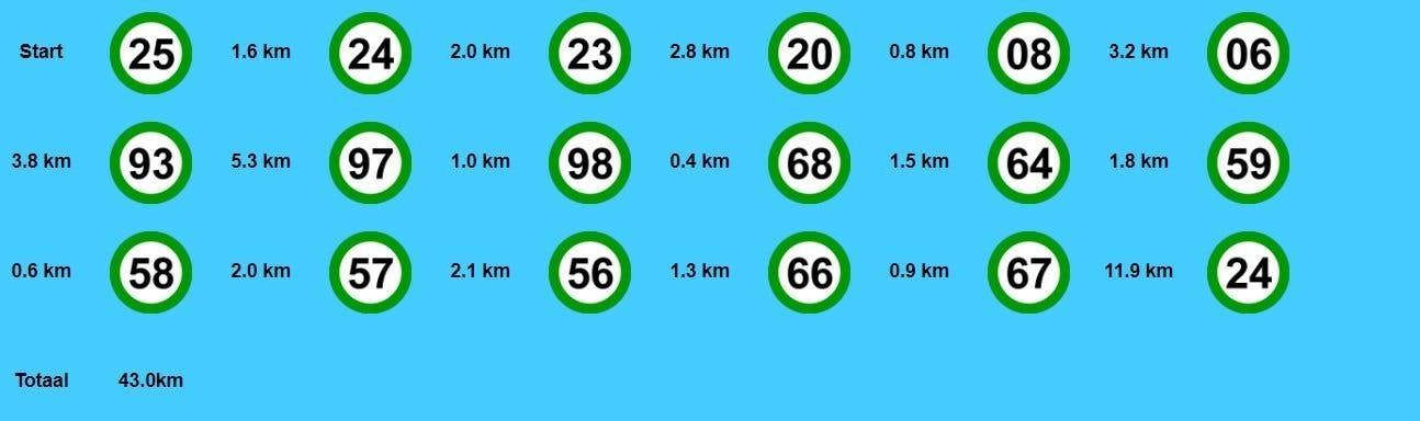 Fietsen met knooppuntenHeb je geen zin om ingewikkelde routebeschrijvingen te onthouden? Fiets dan via fietsknooppunten: witgroene ronde borden met een nummer erop. Samen bestrijken ze praktisch het complete fietspadennetwerk van Nederland. Je hoeft dan niet meer te onthouden waar je precies linksaf of rechtsaf moet slaan: je fiets gewoon van nummer naar nummer. Heel makkelijk dus! Je kunt een route uitzetten via de ANWB of Fietsknoop. Er is ook een bijbehorende app voor iOS en voor Android. Nog niet uitgefietst? Meer fietsroutes vind je in het overzicht.