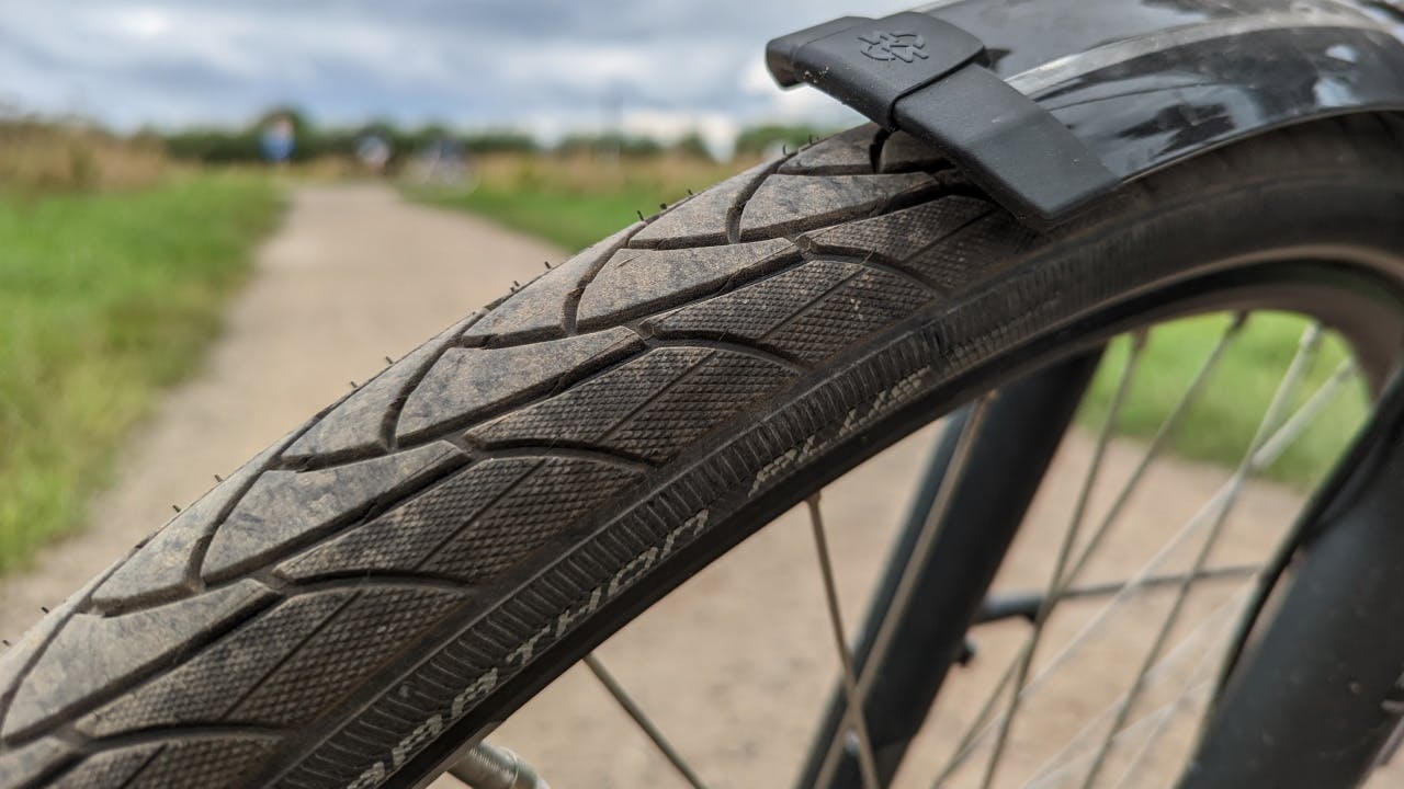 Zachte banden hebben meer rolweerstand, en dat tikt op een langere rit flink aan. Controleer vóór zo’n lange rit dus je bandenspanning en pomp je banden op. Niet te hard natuurlijk, want dat gaat ten koste van het comfort en het stuurgedrag. Normaal gesproken hoort de bandendruk tussen de 4,5 en 5,5 bar te zijn. Check daarvoor het boekje dat je bij de fiets hebt gekregen of de maximale druk die op de zijkant van de band staat.