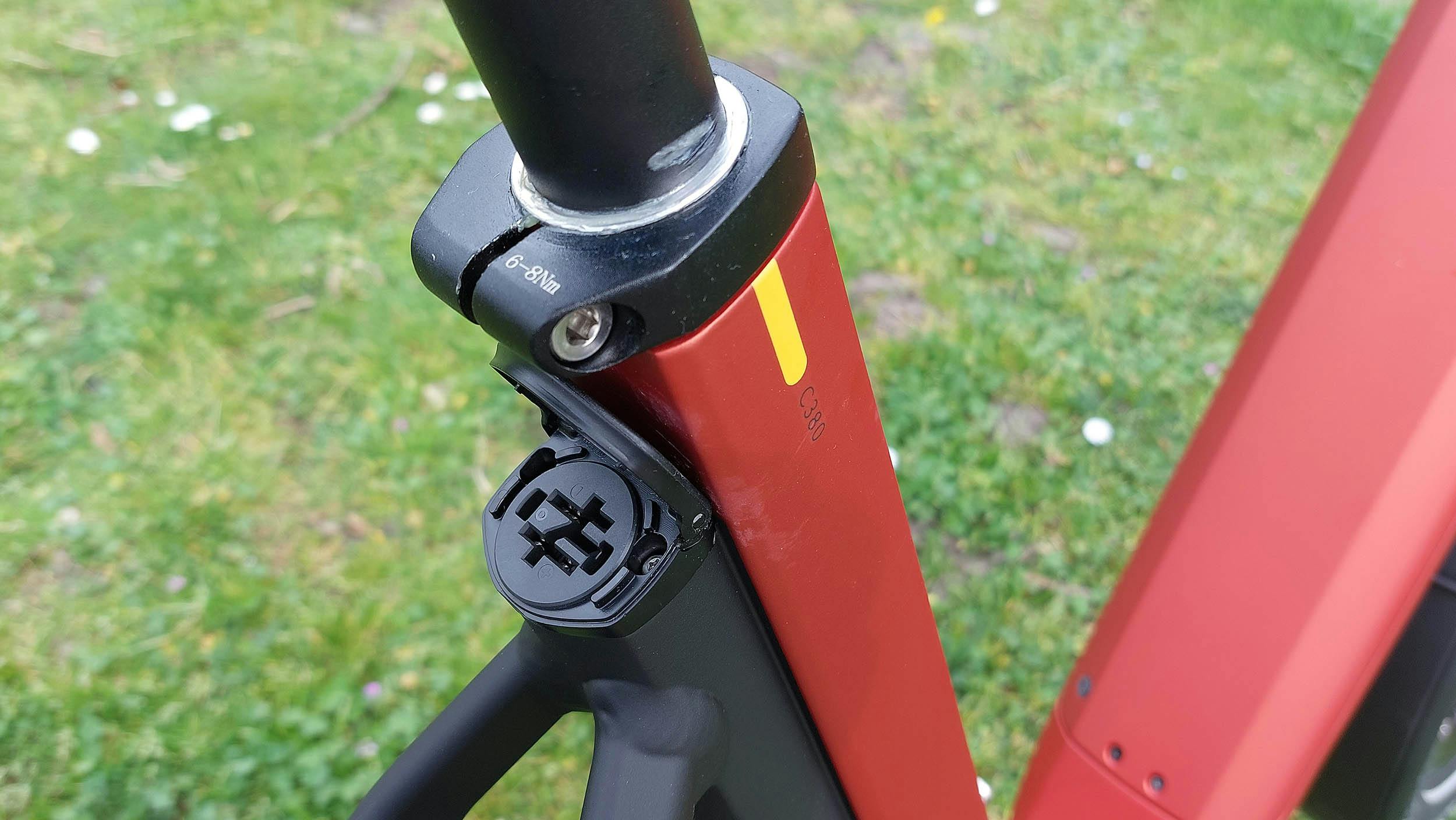 Bij Gazelle speelt design altijd een belangrijke rol. Ook bij het ontwerp van de Eclipse is veel aandacht besteed aan de afwerking en vormgeving. Vooral de gedeelde framebuis (die we hierboven al kort aanstipten) van het damesmodel springt in het oog. Normaliter is een buis met geïntegreerde accu erg fors en lomp om framestabiliteit te garanderen, maar een dergelijke buis doet vrijwel altijd afbreuk aan het ontwerp van de fiets. Door voor een designoplossing met gesplitste framebuizen te kiezen is het ontwerp van de Eclipse mooi in balans. Ook heeft Gazelle extra veel aandacht besteed aan het ontwerp van de stuurpen. De Bosch Kiox-display en de kabels zijn hierin fraai geïntegreerd.