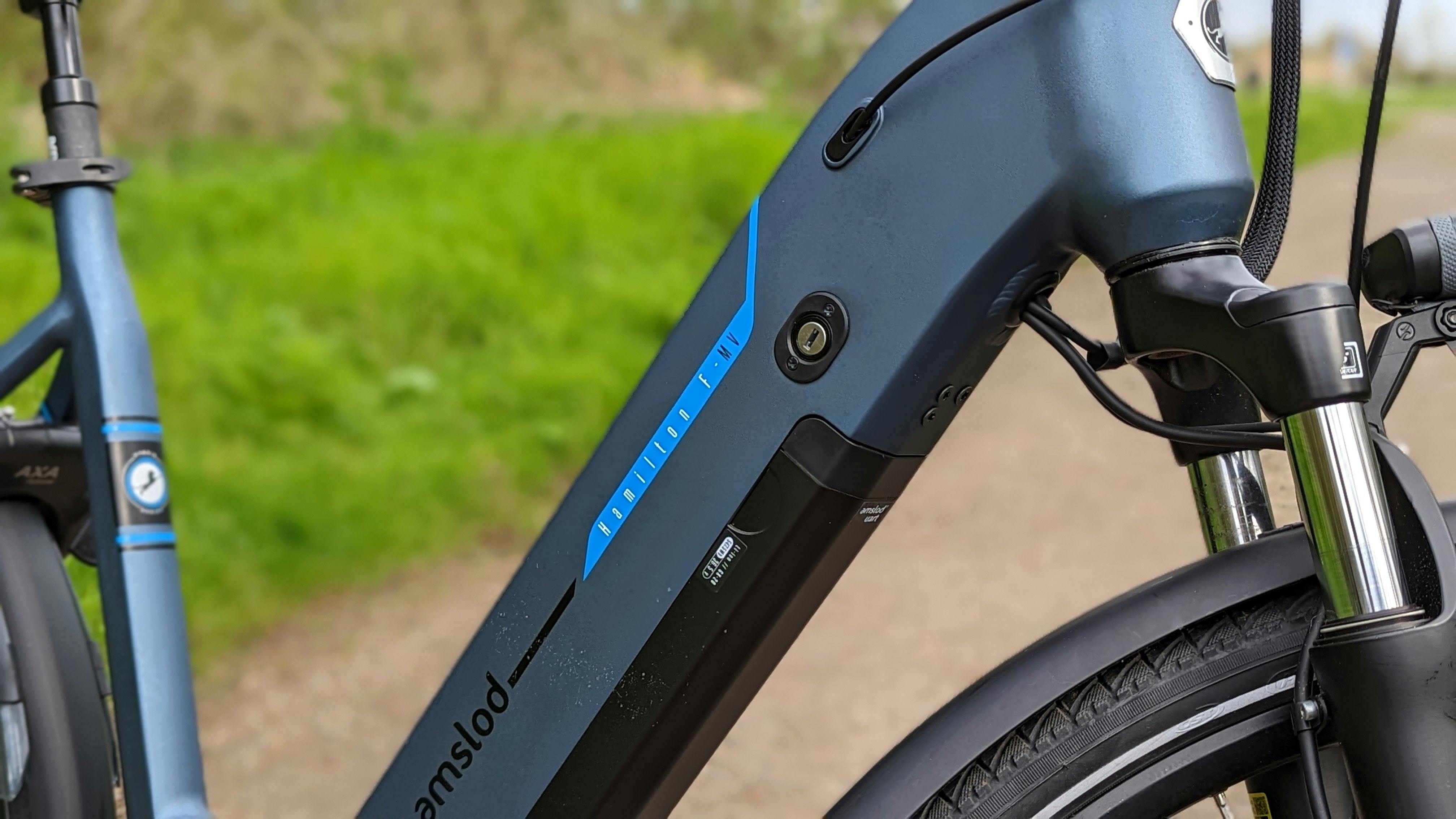 De accu van de Amslod Hamilton heeft een capaciteit van 540 watt en zorgt in combinatie met de zuinige motor voor een prima bereik. Deze accu zit fraai in het mooi-afgewerkte frame verwerkt.