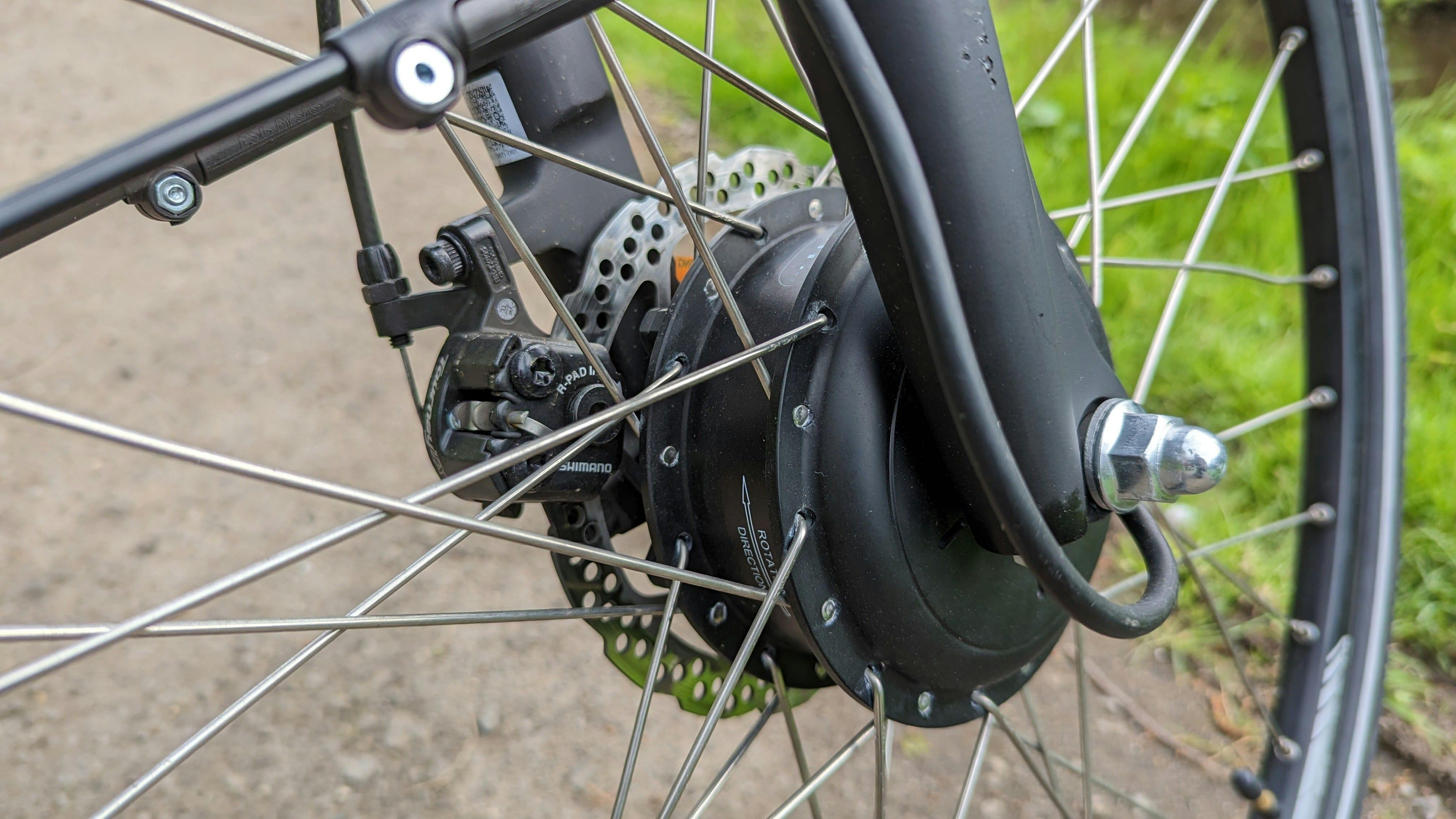 "De fiets is licht van gewicht dankzij de voorwielmotor, wat het gemakkelijk maakt om hem te verplaatsen en te manoeuvreren."