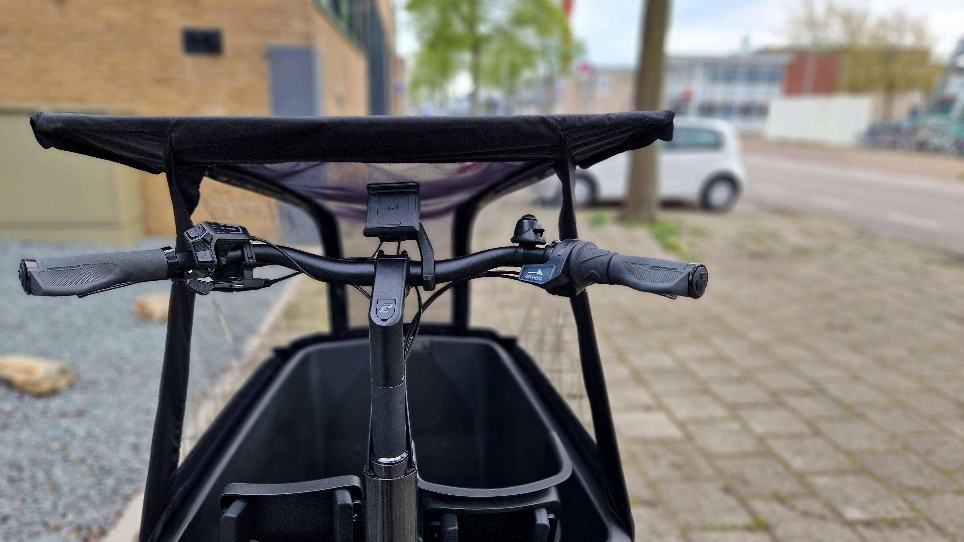 Deze elektrische bakfiets heeft geen display; je gebruikt je smartphone met een app om de snelheid, ondersteuning, accuniveau en dergelijke te zien. Je smartphone wordt tijdens het rijden gelijk opgeladen. Chavenne Ooms heeft ervaren dat je die app op dit moment maar aan één telefoon kunt koppelen: dat is onhandig als bijvoorbeeld je partner de bakfiets ook wil gebruiken. Je kunt de fiets trouwens ook zonder de app gebruiken: via kleuren op het bedieningspaneel op het stuur zie je in welke ondersteuningsstand je fietst.