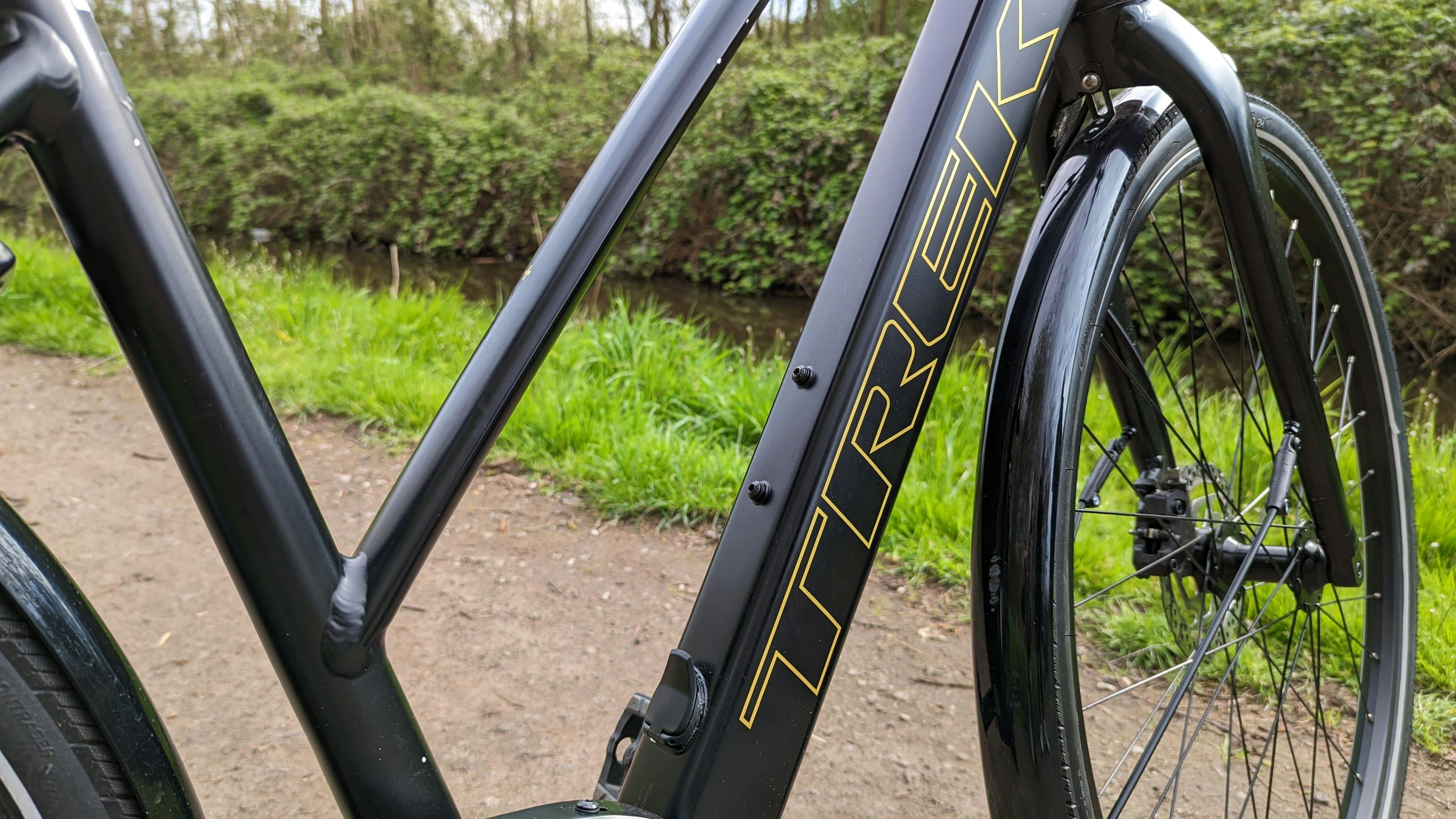 De accu is goed verstopt in het frame. De stang van het frame is dun genoeg om door te gaan voor een gewone stang, maar toch heeft Trek hier een accu in weten te verstoppen. Al ging dat helaas niet zonder compromissen...