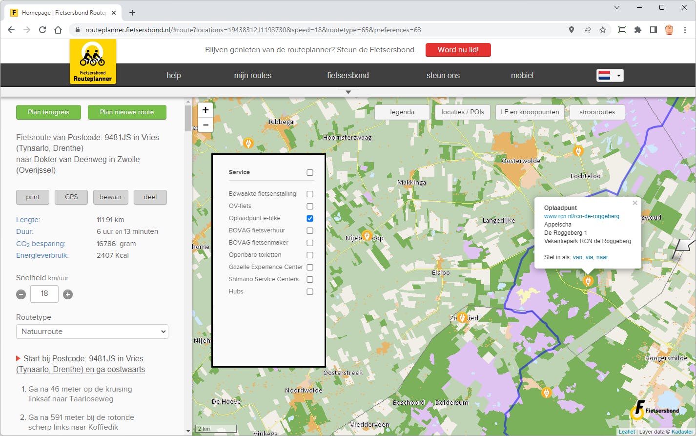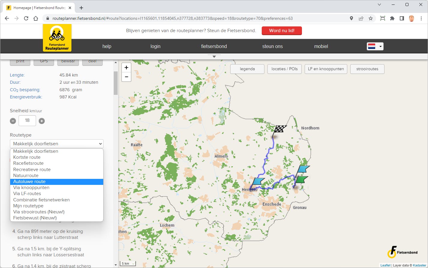Fietsroutes plannen met de Fietsersbond-app