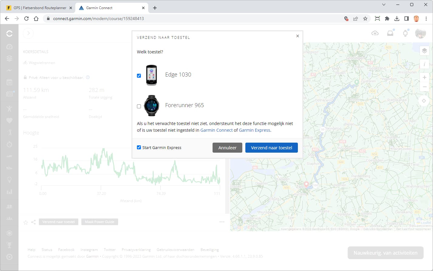 - Route exporteren voor bijvoorbeeld je fietscomputer