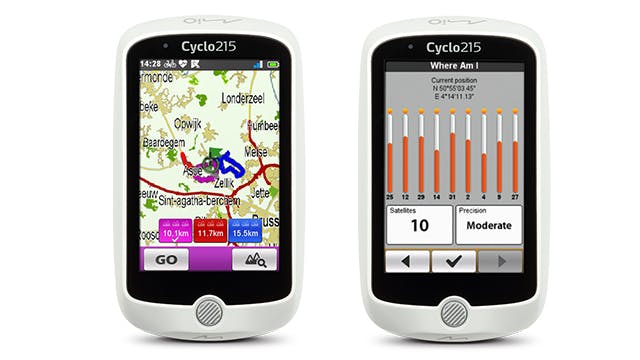 Op het eerste gezicht lijkt de Mio Cyclo 215 vrij fors en zwaar voor een fietscomputer en dat is hij ook. Voordeel van de flinke omvang is het grote 3,5-inch scherm. Daarop is de kaart goed afleesbaar. En van die navigatie moet de Mio het vooral hebben. Standaard zijn fietskaarten van heel Europa geïnstalleerd en alle navigatie-functionaliteit kun je op het kastje zelf vinden en bedienen. Dat komt goed uit want er is geen smartphone-app waarmee je routes of andere instellingen naar de fietscomputer kunt sturen.