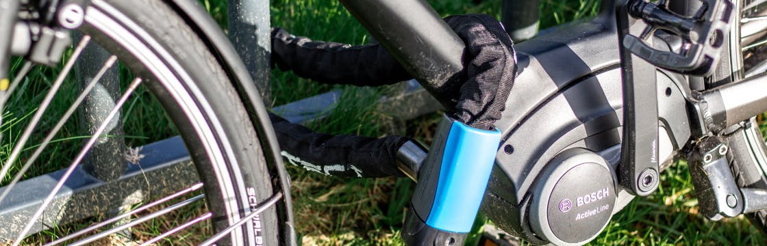 Is er in de omgeving niets waaraan je je fiets kunt vastzetten? Rijd dan een stukje verder totdat je een plek vindt waar dat wel kan, of kijk of er een bewaakte stalling in de buurt is. Die vind je in de meeste stadscentra. Wil je helemaal het zekere voor het onzekere nemen, zorg dat dan ook je accu op slot zit – of haal de accu eruit en neem hem mee.