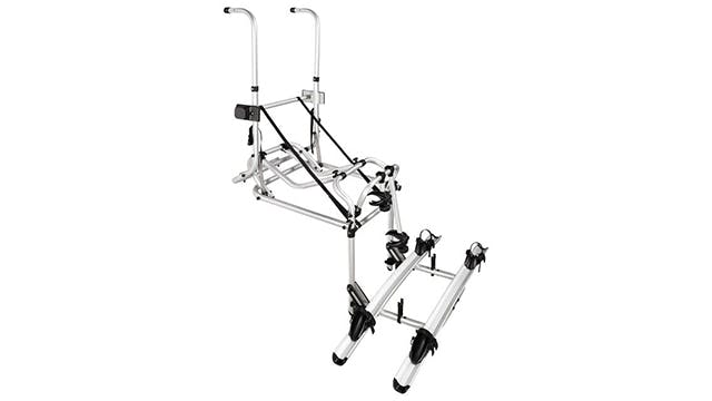 Eigenaren van een camper of caravan kunnen met de Thule Lift V16 twee e-bikes op de achterwand meenemen. Houd rekening met een draagvermogen van in totaal vijftig kilo. Vanwege de hoogte is het in de praktijk lastig om twee zware elektrische fietsen op de wielgoten te tillen. Met dit exemplaar is dat gelukkig helemaal niet nodig.