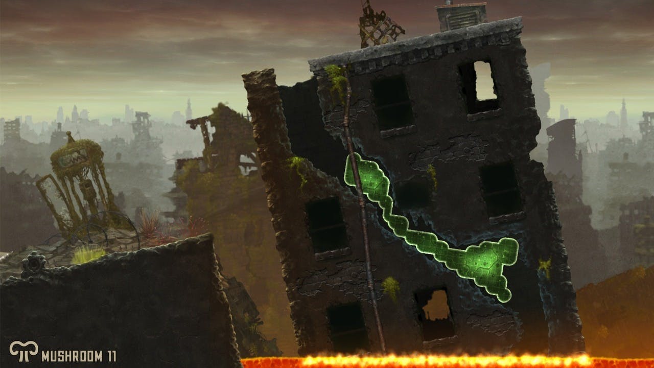 Mushroom 11 is een intrigerende combinatie van een puzzelgame, een platformer en een actiegame. Spelers loodsen een slijmerige, groene levensvorm door een post-apocalyptisch landschap. Door het scherm aan te raken wis je een deel van de schimmel uit, dat vervolgens aan de andere kant weer aangroeit. Op deze manoeuvreer je de groene blob door gangen en vecht je met eindbazen. De interessante gameplay wordt bijgestaan door sombere handgeschilderde landschappen en onheilspellende muziek.