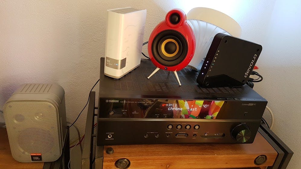 Om de werking verder te testen sluit ik mijn NAS, Multimedia versterker, Chromecast (bedraad) en TV aan de Devolo. Mijn Laptop via 2,4 GHz, Android Yoga Book en Samsung S7 via 5 GHz, het loopt als een zonnetje. Nu kan ik gelijk eens alle software updaten! Ik navigeer naar de NAS, zoek een film uit, rechter muisknop ‘afspelen’ via (he, daar staat nu mijn) TV. Eindelijk een mooi beeld en geluid via tv en versterker. Geen draden over de vloer. Geen blokjes en kleurloze gezichten.