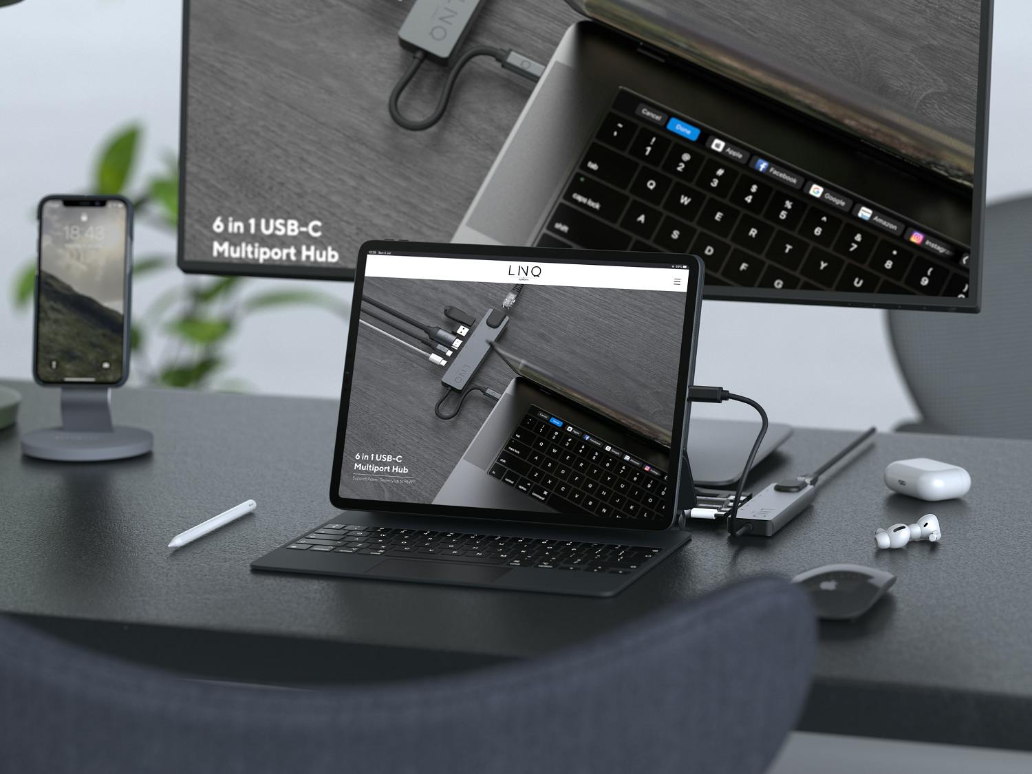 LINQ heeft een breed assortiment van usb-c hubs gericht op laptops met usb-c of Thunderbolt 3. Zoek je naar een usb-c hub, dan is het handig voor jezelf even een overzichtje te maken van de aansluitingen die je nodig hebt. Zo heb je bijvoorbeeld het vertrouwde usb-a 3.1, voor onder andere een muis, toetsenbord of webcam. Of een hdmi-aansluiting voor een monitor, waarbij LINQ in haar hubs tot 4k en 60 Hz ondersteunt. Controleer wel of jouw usb-c-poort het gebruik van hdmi ondersteunt, dat is niet altijd het geval. Ook bij een oudere monitor met alleen een vga-aansluiting kan usb-c je uit de brand helpen, zoek dan specifiek een hub met deze aansluiting. Er zijn verder modellen met kaartlezer voor bijvoorbeeld sd, ideaal als dat niet al in je laptop zit.