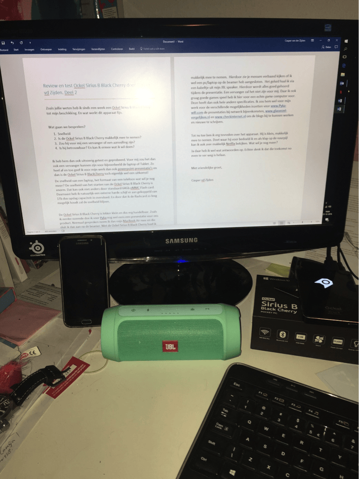 Ik heb hem dan ook uitvoerig getest en geprobeerd. Voor mij zou het dan ook een vervanger kunnen zijn voor bijvoorbeeld de laptop of tablet. Zo heel af en toe geef ik voor mijn werk dan ook powerpoint presentaties en dan is de Ockel Sirius B BlackCherry toch eigenlijk wel een uitkomst!