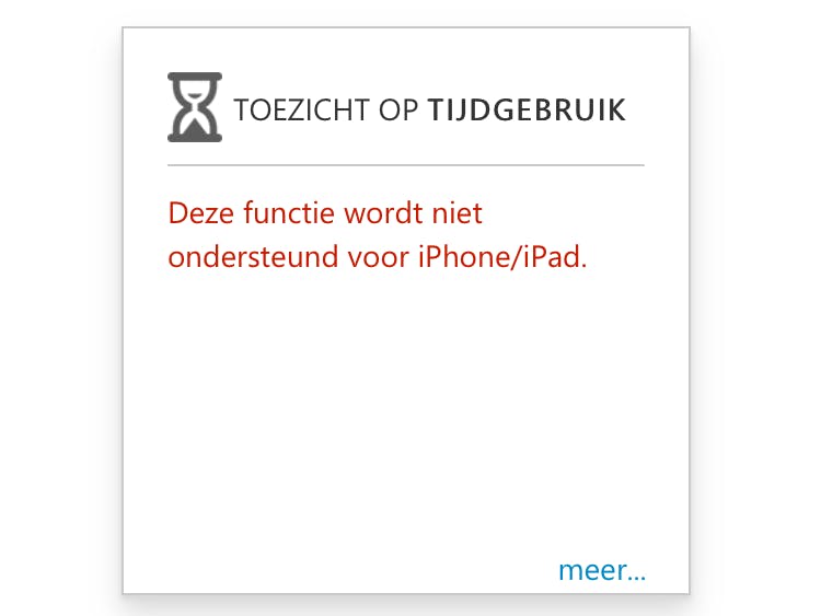 Eenmaal bij de resultaten kom ik tot de conclusie dat er weinig gemeten is. Eigenlijk zie ik bijna alleen maar foutmeldingen in mijn account terugkomen. Niet omdat ik iets fout heb gedaan bij de installatie maar omdat er blijkbaar op een iPad niet veel gemeten kan worden. Ik wil bijvoorbeeld weten wat het app gebruik de kinderen is, in mijn ogen het belangrijkste bij gebruik van een iPad. Toch krijg ik de volgende melding in mijn account “Niet gekoppeld aan een apparaat dat Toezicht op mobiele apps ondersteunt.” En dezelfde melding krijg ik ook bij het meten van de tijd en gedrag op sociale netwerken te zien. In mijn geval is het meten van een sociaal netwerk nog niet van toepassing maar het is toch best jammer dat dit blijkbaar niet kan op een iPad. Het meten van de tijd vind ik wel erg belangrijk om te weten, dit is echt een gemis.