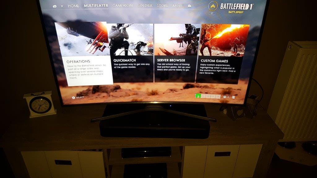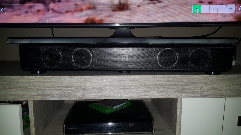 Het beeld bleef echter een tijdje weg, na wat drukken op de HDMI knop van de afstandsbediening was het raak. De harde bass die erin ziet, viel mij gelijk op. Gelukkig kun je deze met de afstandsbediening zachter zetten. Het enige nadeel van de afstandsbediening vind ik dat je deze echt moet richten op de Cinebase anders reageert deze niet.