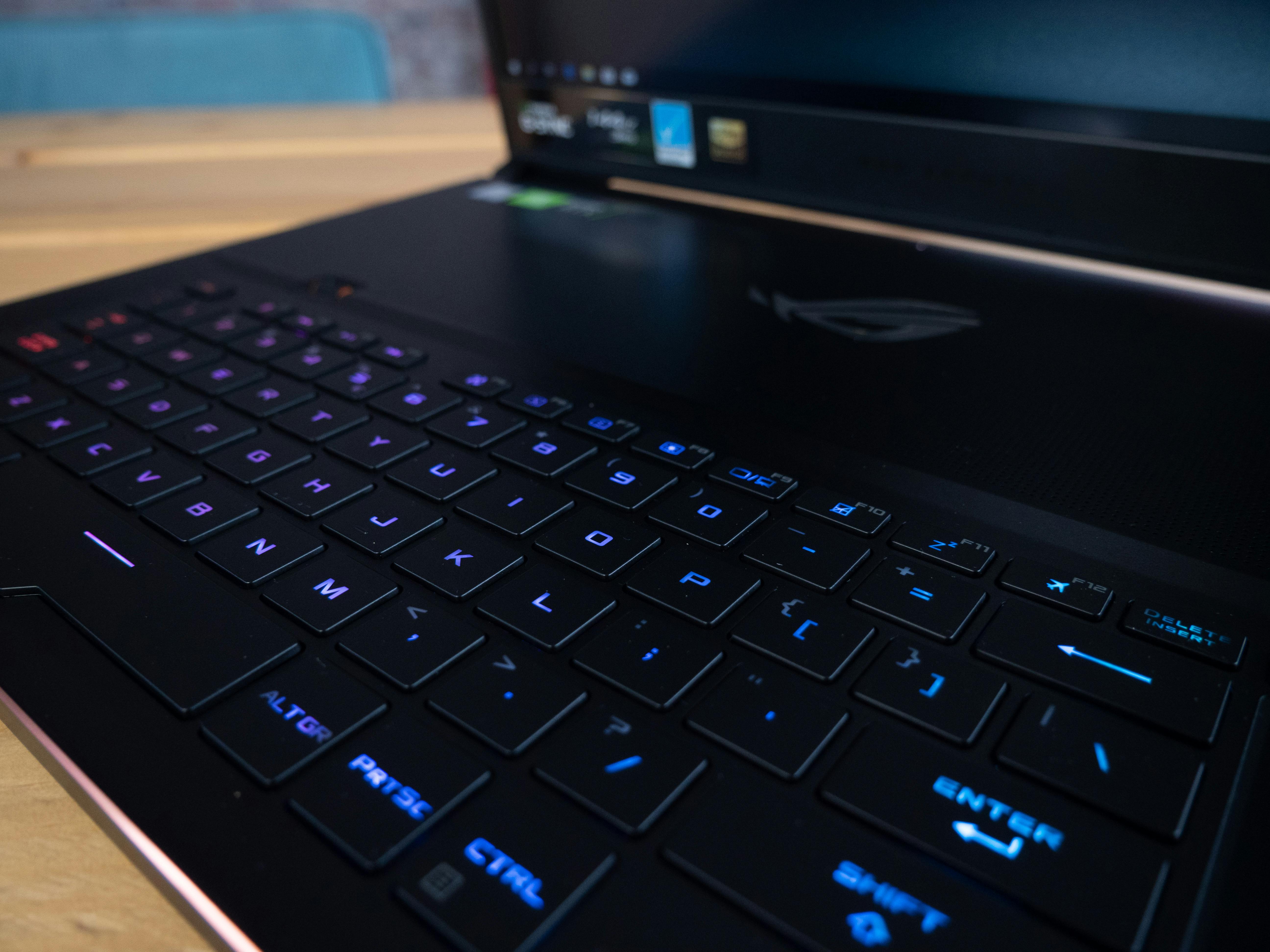 De geringe omvang van het chassis heeft ASUS er niet van weerhouden om RGB-verlichting te verwerken op zowel de onder- als bovenkant, met natuurlijk per-toets instelbare verlichting onder het toetsenbord. Als je de Zephyrus in moet zetten op werk of school kan al deze verlichting met een druk op de knop uit worden gezet, waarna zonder moeite weer aan kan zodra het tijd is om te ontspannen met een game of serie.