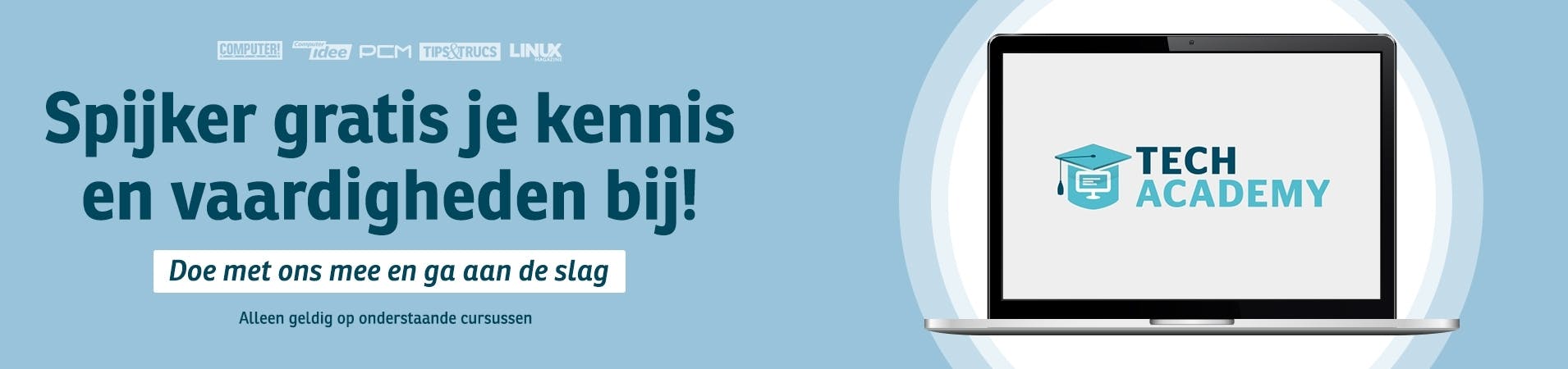 Het aanbod van online cursussen (waaronder gratis cursussen) bij de Tech Academy wordt steeds uitgebreider. Neem daarom regelmatig een kijkje bij de Tech Academy wat er op de plank ligt, er is altijd wat te vinden om je digitale vaardigheden bij te spijkeren.