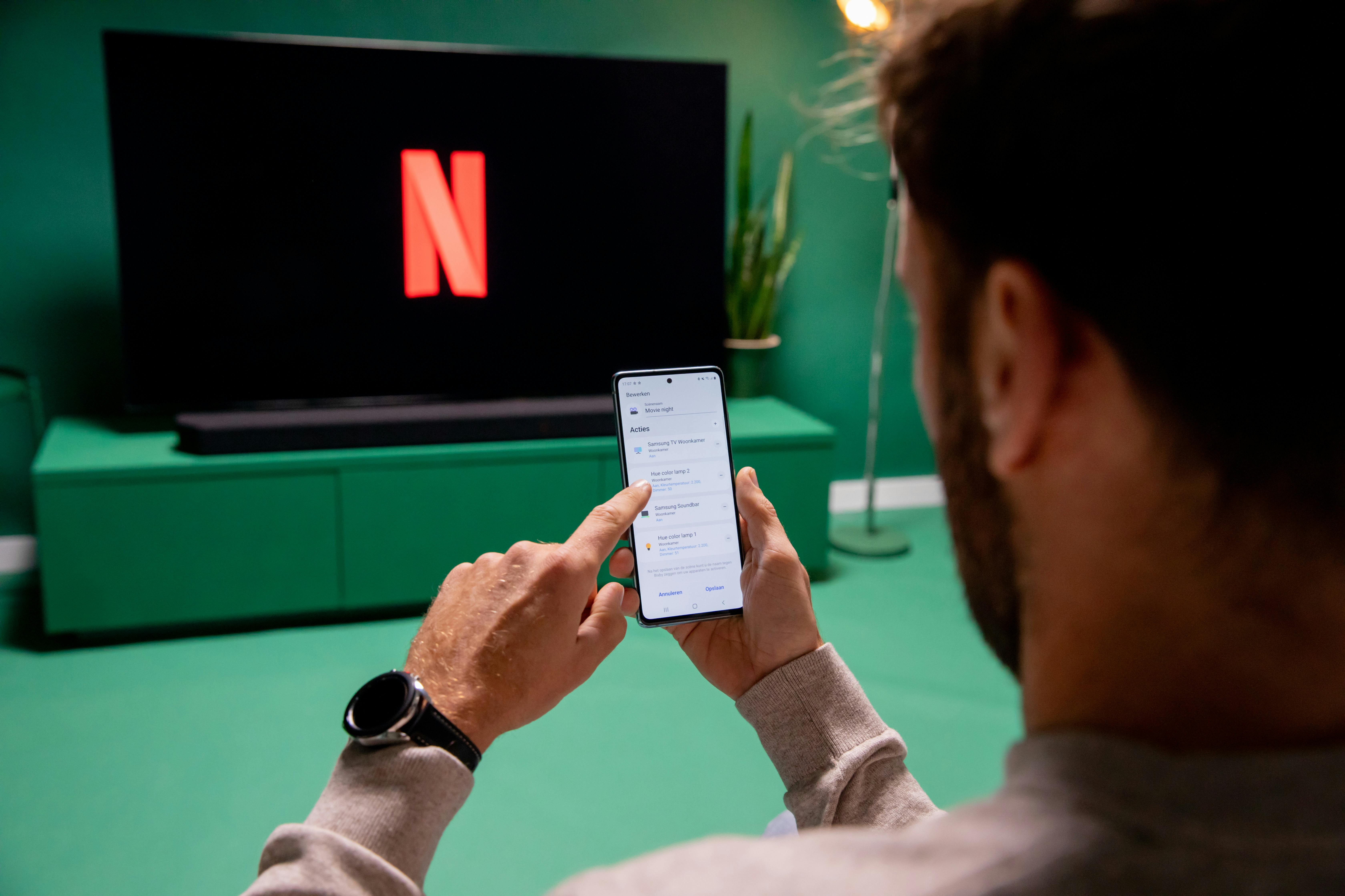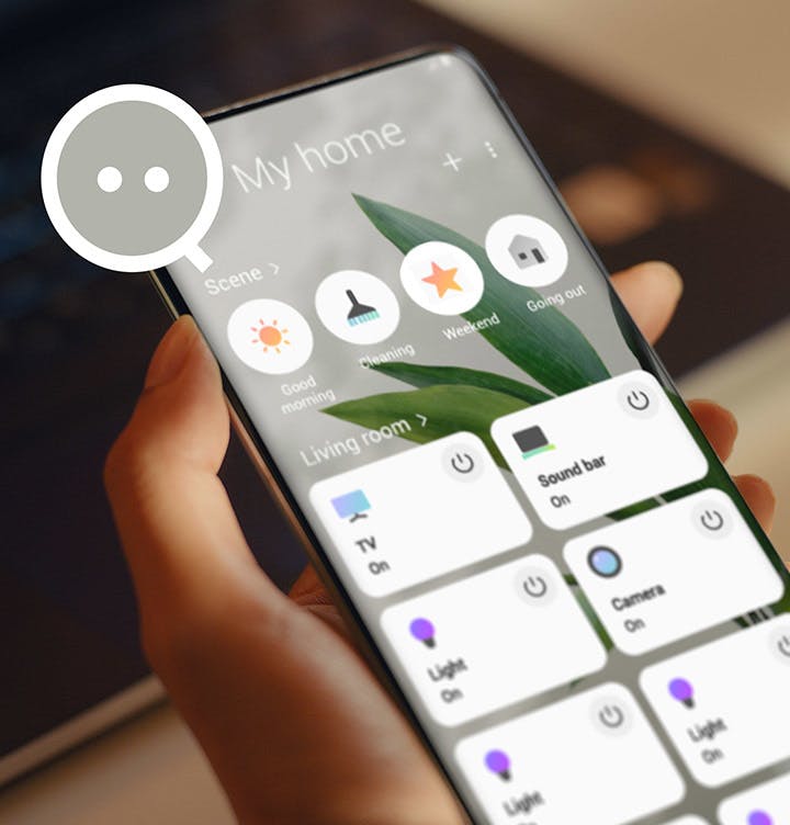 Bovendien is het ook mogelijk om scènes aan te maken waarbij je meerdere apparaten op elkaar afstemt. Met de scene ‘Movie night’ koppel je bijvoorbeeld je soundbar, slimme verlichting en televisie aan elkaar. Bij een romantische avond laat je de lampen dimmen en zet je Netflix automatisch aan op de tv, terwijl de soundbar overschakelt op bioscoopweergave. Met de functie View Inside van je slimme koelkast Samsung Family Hub™ werp je vanaf kantoor een blik in de koelkast om te zien wat er nog in huis is. Zo weet je direct of je onderweg naar huis nog boodschappen moet halen voor het avondeten.