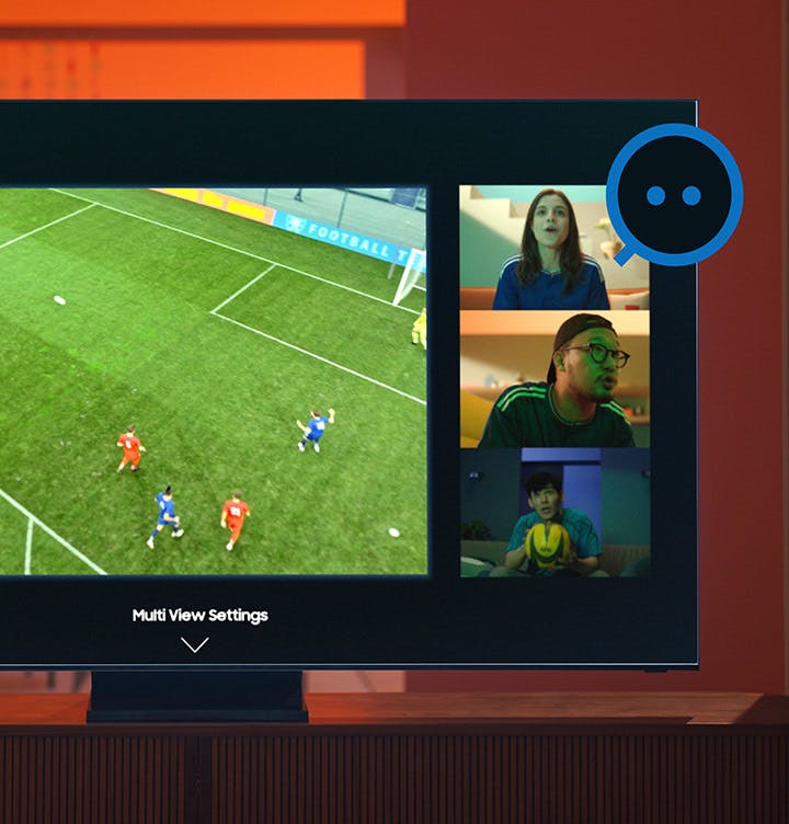 Voor een gezellige avond met vrienden hoef je niet in dezelfde kamer bij elkaar te zitten. Met de Smart View-functie van de SmartThings-app spiegel je de inhoud van je telefoon met de televisie en met Multi View kun je het tv-scherm in twee splitsen. Kijk samen een voetbalwedstrijd of woon een optreden bij vanuit je huiskamer, terwijl je het je videogesprek met je vriendengroep op de televisie tv ziet naast de beelden van het event. Virtueel bij elkaar, helemaal van nu! Samen kijken, op afstand, voor dubbel plezier.