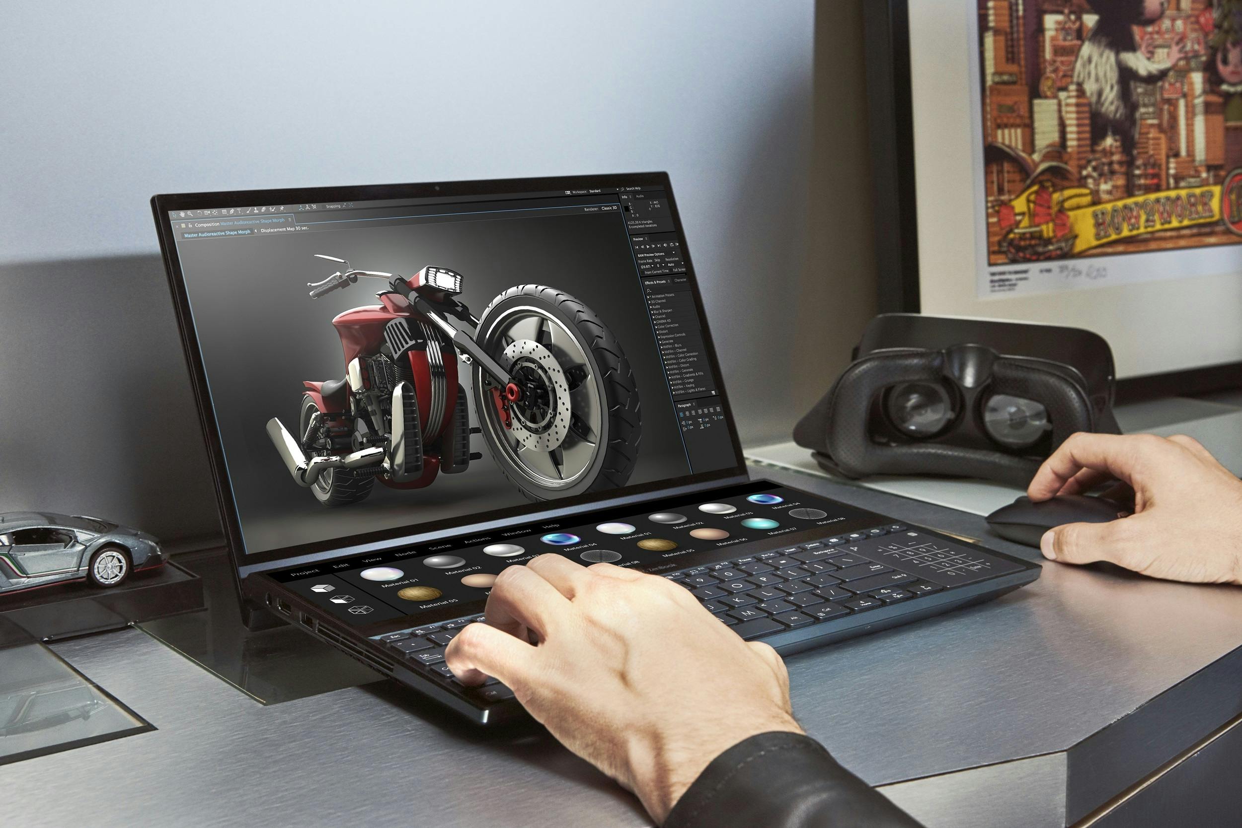 Bepaalde grafische werkzaamheden lenen zich minder voor een traditionele bediening met een muis en toetsenbord. Denk bijvoorbeeld aan het maken van snelle aantekeningen of een eerste ontwerp van een animatie. De betere notebooks hebben een aanraakgevoelig scherm, zodat je met je vingers of een stylus (aan)tekeningen kunt maken. De ASUS ZenBook (Pro) Duo heeft er zelfs twee, want ook de zogeheten ScreenPad Plus boven het toetsenbord is aanraakgevoelig. Vanwege het stabiele oppervlak kun je hierop gemakkelijker tekenen. Sommige grafische softwarepakketten ondersteunen overigens touchbediening, waarna je met je vingers vliegensvlug correcties toepast.