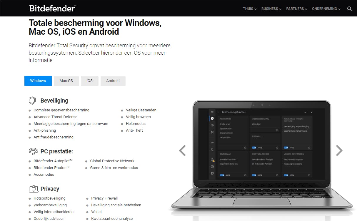 Veel betaalde security-software is voorzien van allerlei extra’s, denk aan een uitgebreide firewall, ouderlijk toezicht, systeemoptimalisatie, bescherming van persoonsgegevens, anti-phising en heel veel meer. Afhankelijk van de versie. Antivirus biedt vooral optimale malwarebescherming. Veel bedrijven bieden ook een Internet Security aan, die daarbij ook nog een firewall en bescherming van persoonsgegevens biedt. De derde variant die veel geboden wordt, is het totaalpakket, zoals Bitdefender’s Total Security. Zo’n pakket biedt niet alleen alles dat antivirus en internet security ook bieden, maar zorgt ook voor beveiliging voor je smartphone en eventueel je Mac.
