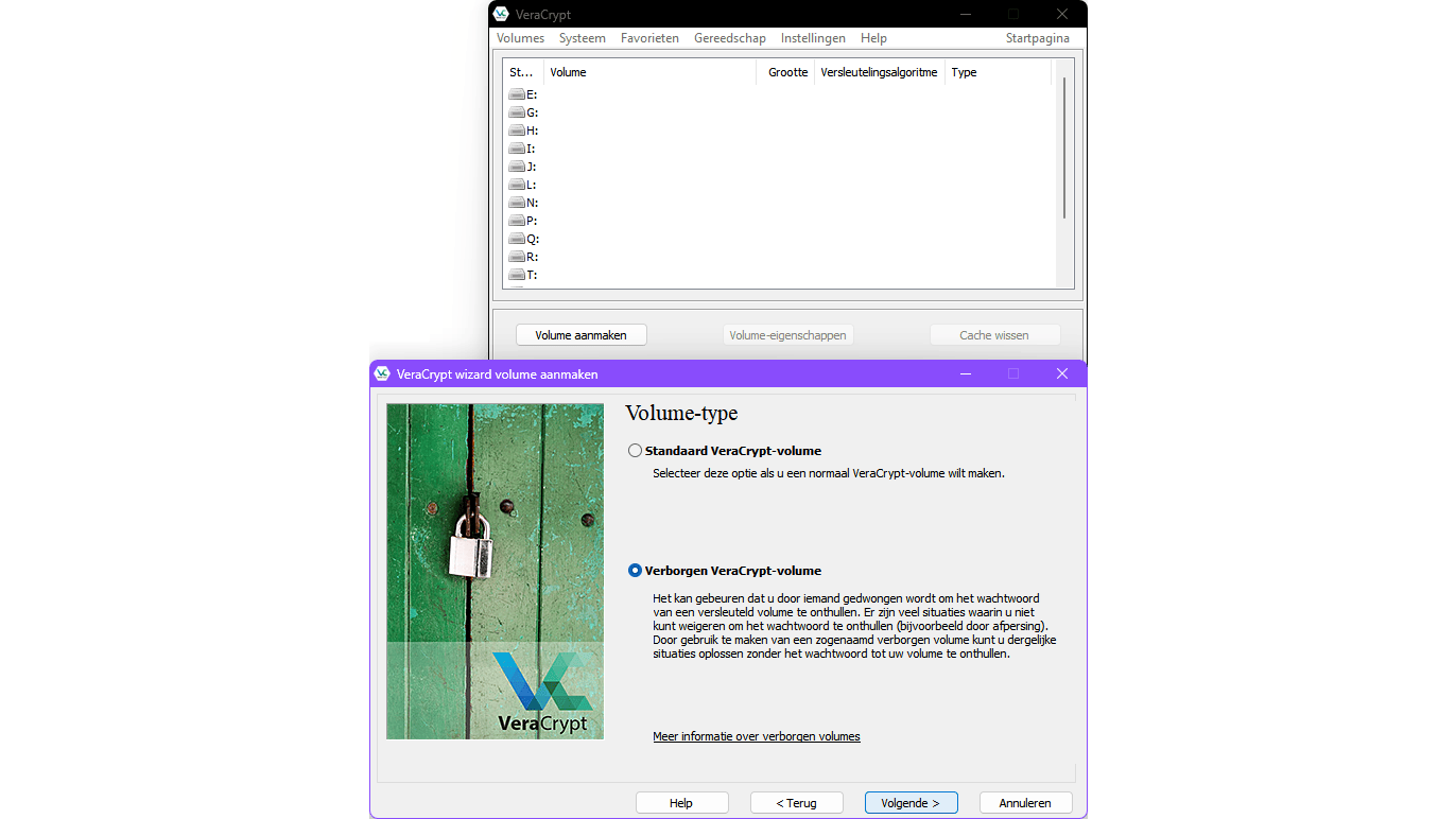 Om te voorkomen dat anderen toegang krijgen tot je gegevens, bijvoorbeeld bij diefstal van je laptop of via een live bootmedium, kun je deze versleutelen. De meeste besturingssystemen hebben een ingebouwde encryptie-optie, zoals BitLocker voor Windows Pro en hoger en FileVault voor macOS. Een degelijk en gratis alternatief is VeraCrypt (ook voor Windows Home), met de opties Een versleutelde bestandscontainer aanmaken, Een niet-systeempartitie/schijf versleutelen of De systeempartitie of de gehele systeemschijf aanmaken. De eerste is handig om specifieke bestanden te versleutelen.