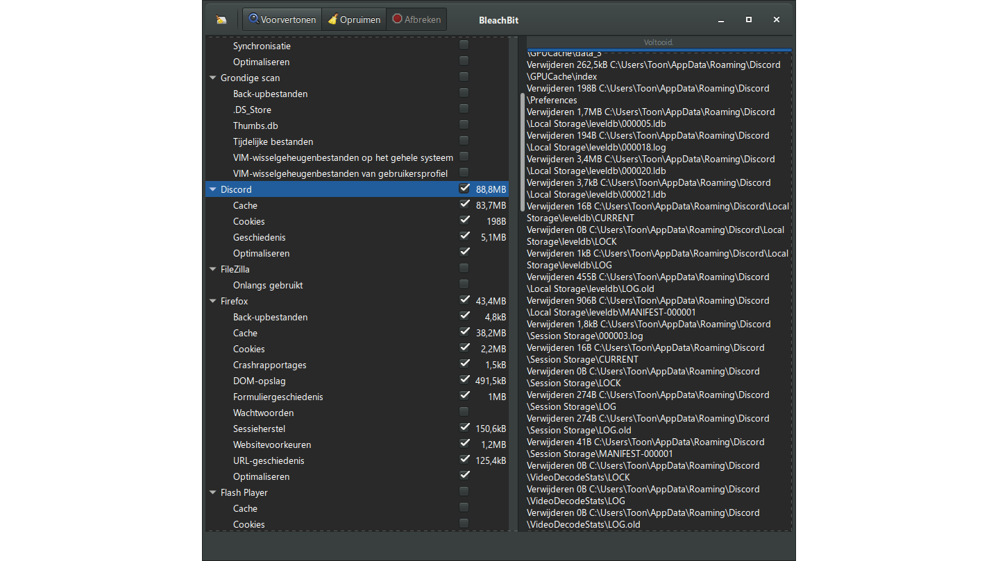 Windows en veel applicaties, zoals browsers, laten gebruikssporen achter die je misschien liever wilt opruimen. Dit kan met het gratis BleachBit (ook portable). Selecteer de gewenste opties en klik op Voorvertonen voor een detailanalyse voordat je met Opruimen bevestigt. Een heel ander type opschoner is Eraser. Hiermee kun je specifieke bestanden of volumes, maar ook ongebruikte schijfsectoren (die nog sporen van oude bestanden kunnen bevatten) overschrijven met pseudotoevallige data, zodat niemand die nog kan inkijken.