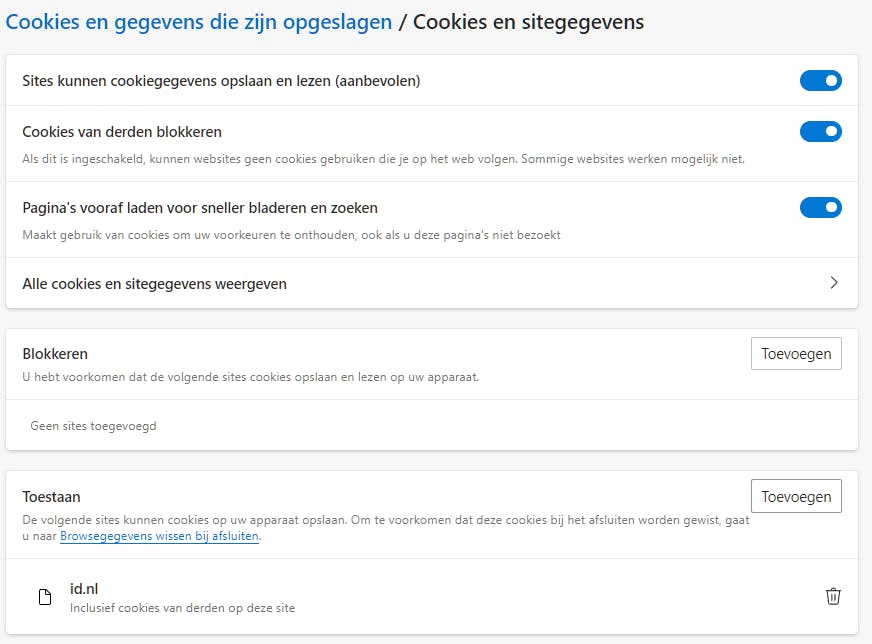 Voor gepersonaliseerde advertenties worden overwegend traceercookies gebruikt. Deze kun je in de meeste browsers blokkeren. In Chrome doe je dit door naar Instellingen / Privacy en beveiliging te gaan, waar je bij Cookies van derden de optie Cookies van derden blokkeren inschakelt (voor het whitelisten van sites gebruik je Toevoegen). In Edge ga je naar Instellingen / Cookies en site machtigingen, kies je Cookies en sitegegevens beheren en verwijderen en activeer je Cookies van derden blokkeren (bij Toestaan kun je uitzonderingen opnemen).