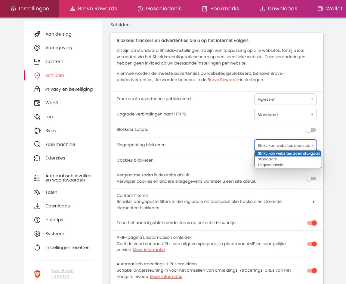 Zelfs met de strikte privacyinstellingen van Chrome en Edge ben je slechts beperkt beschermd tegen geavanceerde traceringsmethodes als ‘browser fingerprinting’. Hierbij creëren webservers via kenmerken als geïnstalleerde lettertypes, extensies en de ingestelde taal, een unieke ‘vingerafdruk’ van je browser. Je bent iets beter af met Firefox: typ about:config in de adresbalk, zoek naar privacy.resistFingerprinting en stel deze optie in op true. Of kies voor privacygerichte browsers als LibreWolf (op basis van Firefox) en Brave (op basis van Chromium), die nog beter beschermen tegen fingerprinting. De uniciteit van je browser kun je nagaan via www.amiunique.org.