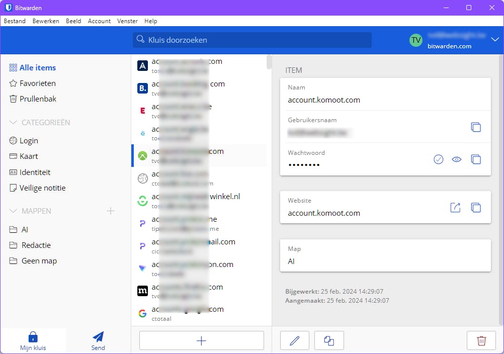Het gebruik van eenvoudige wachtwoorden of dezelfde wachtwoorden voor verschillende accounts is veiligheidshalve af te raden. Een wachtwoordmanager kan helpen om verschillende, complexe wachtwoorden te beheren en te onthouden. Zo’n tool bewaart je account-ID’s in een versleutelde database. De meeste wachtwoordmanagers bieden tevens browserextensies die je account-ID’s automatisch kunnen invullen. Bekende tools zijn Dashlane, KeePassXC en Bitwarden. Deze laatste is gratis, opensource, beschikbaar voor diverse platformen (inclusief mobiele apparaten), synchroniseert over apparaten heen en ondersteunt passkeys.