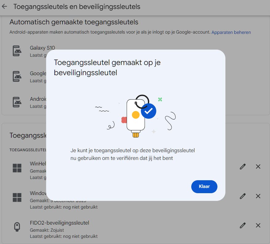 Een aantrekkelijk alternatief voor een OTP-authenticator is een hardwaretoken, zoals een FIDO U2F-sleutel. Dit usb- of NFC-apparaatje dient als tweede factor bij 2FA-aanmeldingen. Bekende merken zijn Nitrokey en YubiKey. Deze laatste kunt je instellen met de app Yubico Authenticator, beschikbaar voor verschillende platformen. Plaats de NFC-sleutel tegen je smartphone en tik op Add account. Scan de QR-code van je account, sla het op en bevestig opnieuw door de sleutel tegen je smartphone te houden. Als je later de sleutel weer tegen je mobiel houdt, verschijnt de actuele OTP-aanmeldcode.