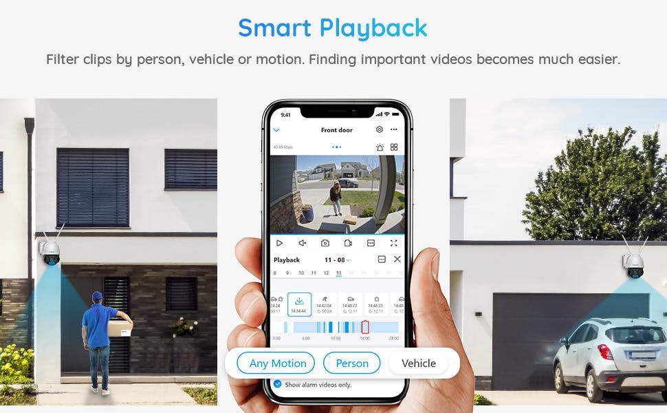 Maar zelfs als je wél thuis bent, is een camerasysteem geen overbodige luxe. Je wil natuurlijk niet dat er ’s-nachts onverlaten over je gazon gaan grasduinen of rond je deuren of ramen aan het rommelen zijn. De persoonsdetectie op de producten van Reolink zorgt ervoor dat je een melding krijgt als er iemand rond je huis sluipt, zelfs als je in bed ligt, onder de douche staat of aan het stofzuigen bent. Met de voertuigdetectie weet de camera dat er een auto voor de deur staat, en kun je even gaan kijken wat er aan de hand is. Een veilig huis, zelfs als je zelf gewoon binnen zit.