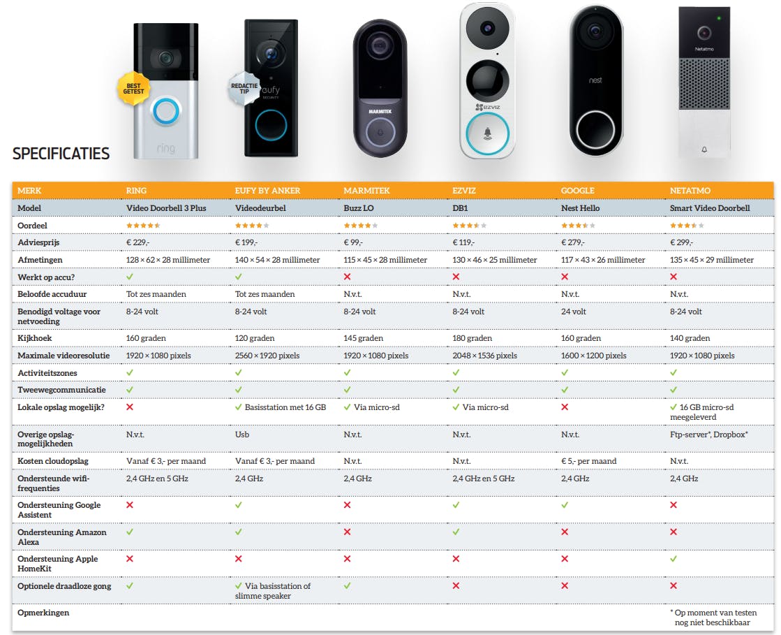 In de afgelopen maanden hebben we zes verschillende videodeurbellen getest op drie locaties. De Ezviz-deurbel hebben we in een appartement gebruikt, de deurbellen van Eufy, Ring en Marmitek in een kantoorpand en de deurbellen van Google en Netatmo in een rijtjeshuis.