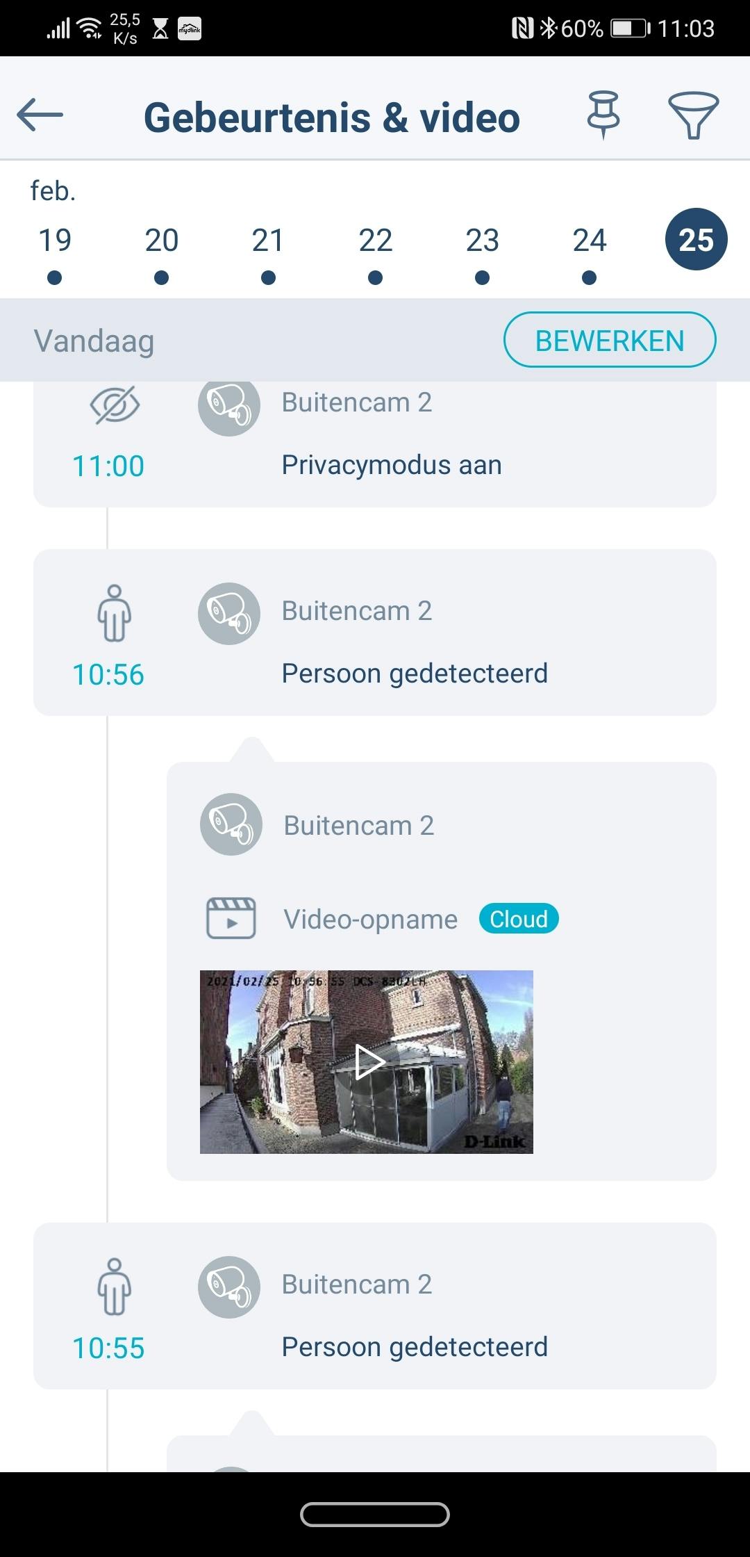 In de mydlink-app regel je het eventueel zo dat de camera je waarschuwt wanneer mensen, bewegingen of geluid worden gedetecteerd. De detectie van personen (en bijvoorbeeld niet dieren) is AI-gebaseerd; via een schuifschakelaar in de app stelt je de detectiegevoeligheid in, maar verder heb je op die waarschuwingen geen invloed.