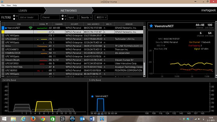 Inssider laat heel overzichtelijk zien welke netwerken er actief zijn en welk kanaal u het beste kunt kiezen.