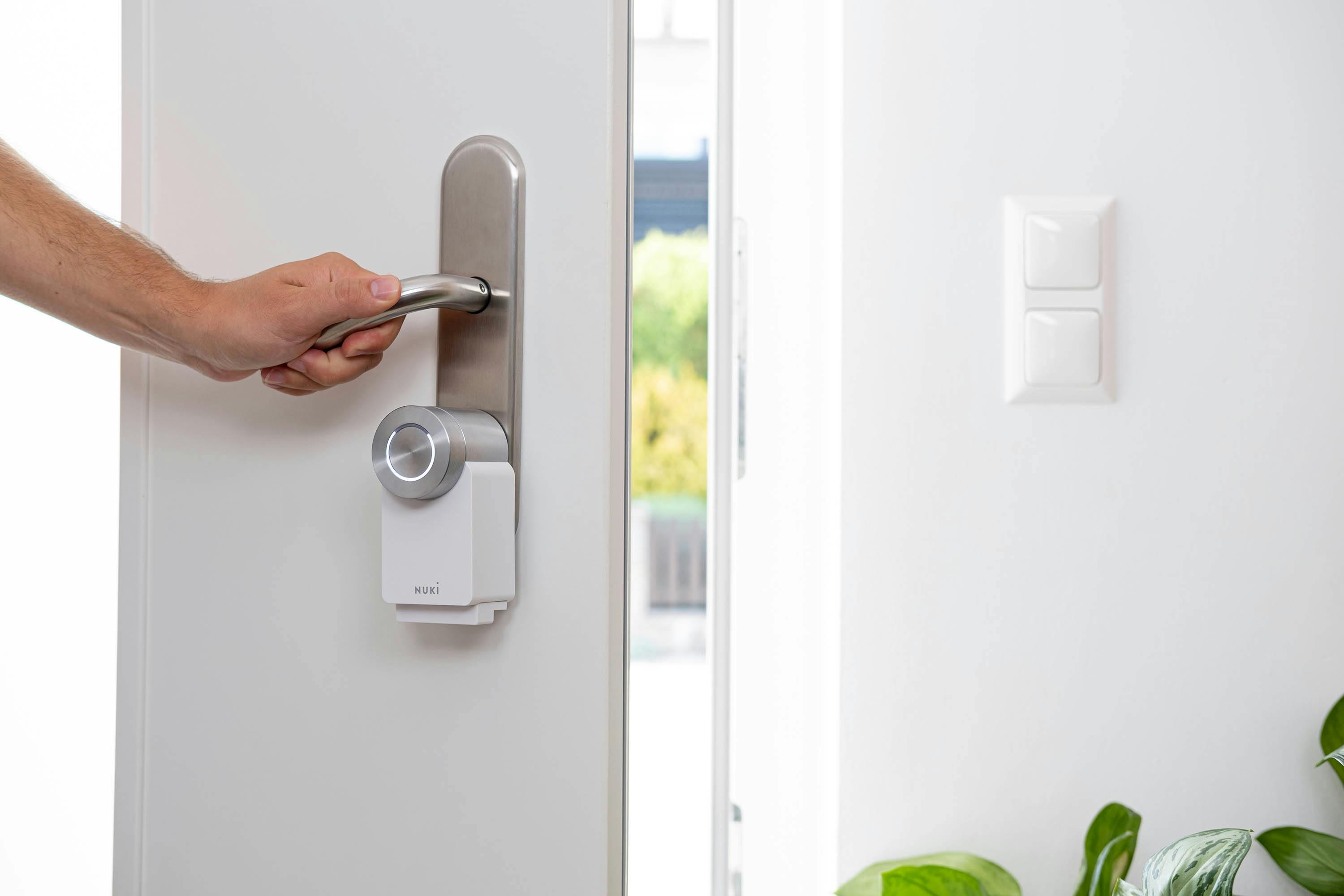Bij een deur met cilinderslot kun je ervoor kiezen om een slim slot te gebruiken, zoals de Nuki Smart Lock 3.0 Pro of de Bold SX33. Met een slim slot kun je de voordeur met je smartphone ontgrendelen in plaats van met een sleutel. Soms kun je ook toegang krijgen via een pincode, vingerafdrukscanner of NFC-tag. Het slimme slot plaats je vaak op de huidige cilinder van je deur. In enkele gevallen moet er eerst een ander type cilinder worden geplaatst.